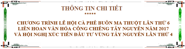 Thông tin Lễ hội và phê Buôn Ma Thuột lần thứ 6 và Liên hoan văn hoá Cồng chiêng Tây Nguyên năm 2017