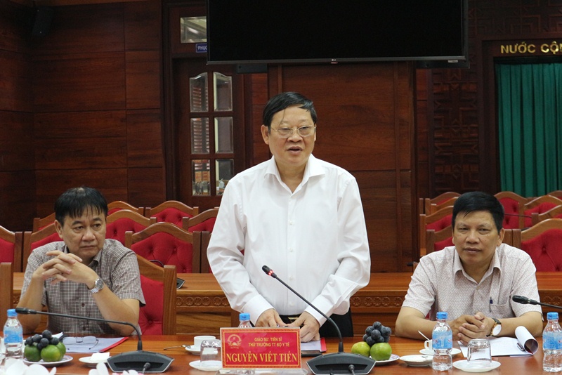 | Giáo sư, Tiến sĩ, Thứ trưởng Thường trực Bộ Y tế Nguyễn Viết Tiến phát biểu tại buổi làm việc |