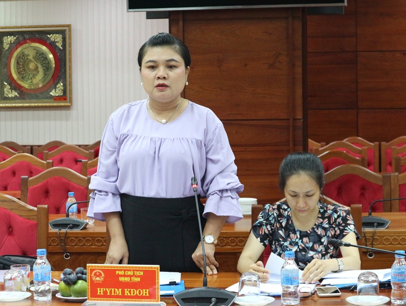 | Phó Chủ tịch UBND tỉnh H’Yim Kđoh phát biểu tại buổi làm việc |