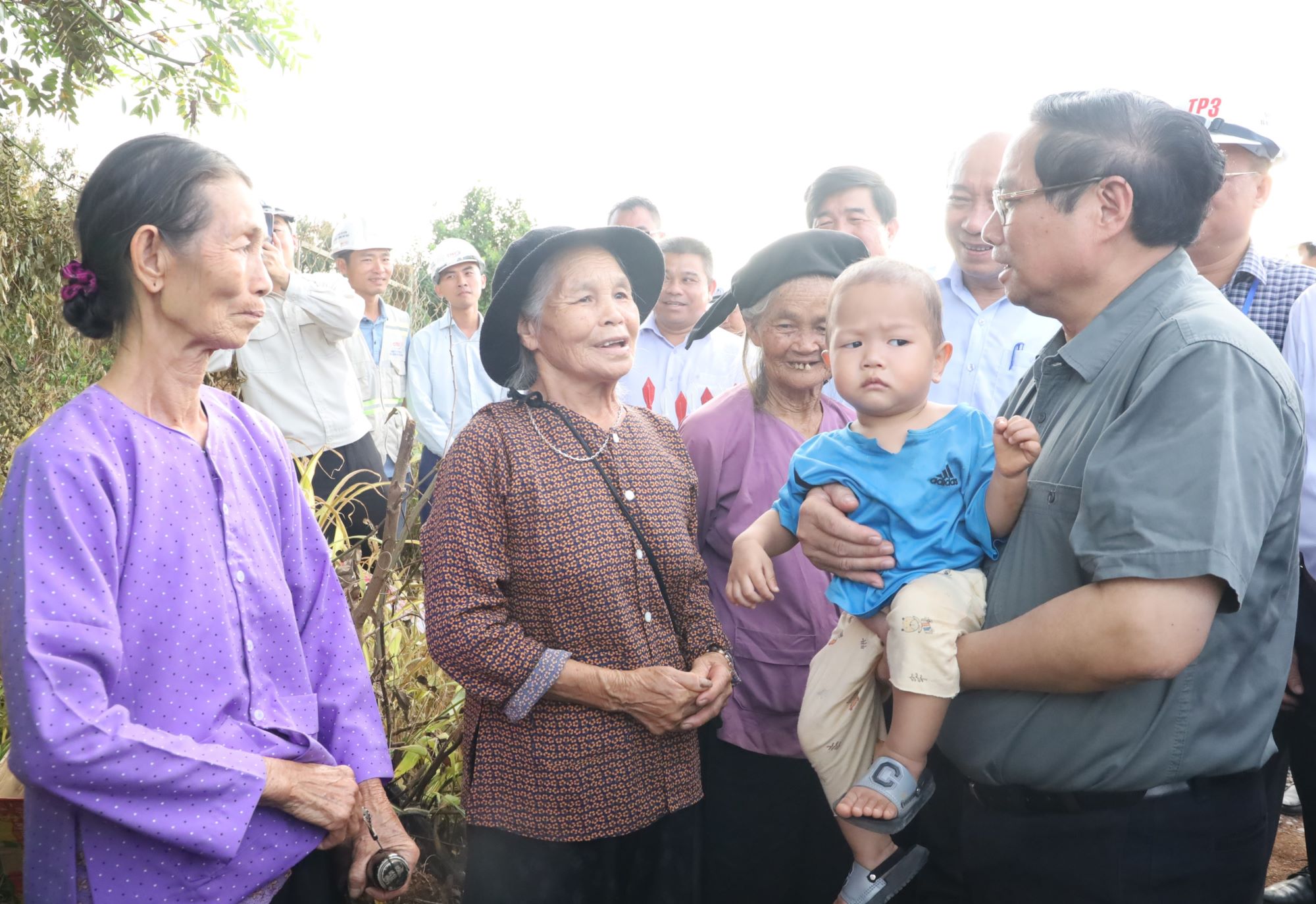| Thủ tướng Chính phủ Phạm Minh Chính trò chuyện, động viên người dân nơi dự án đi qua |