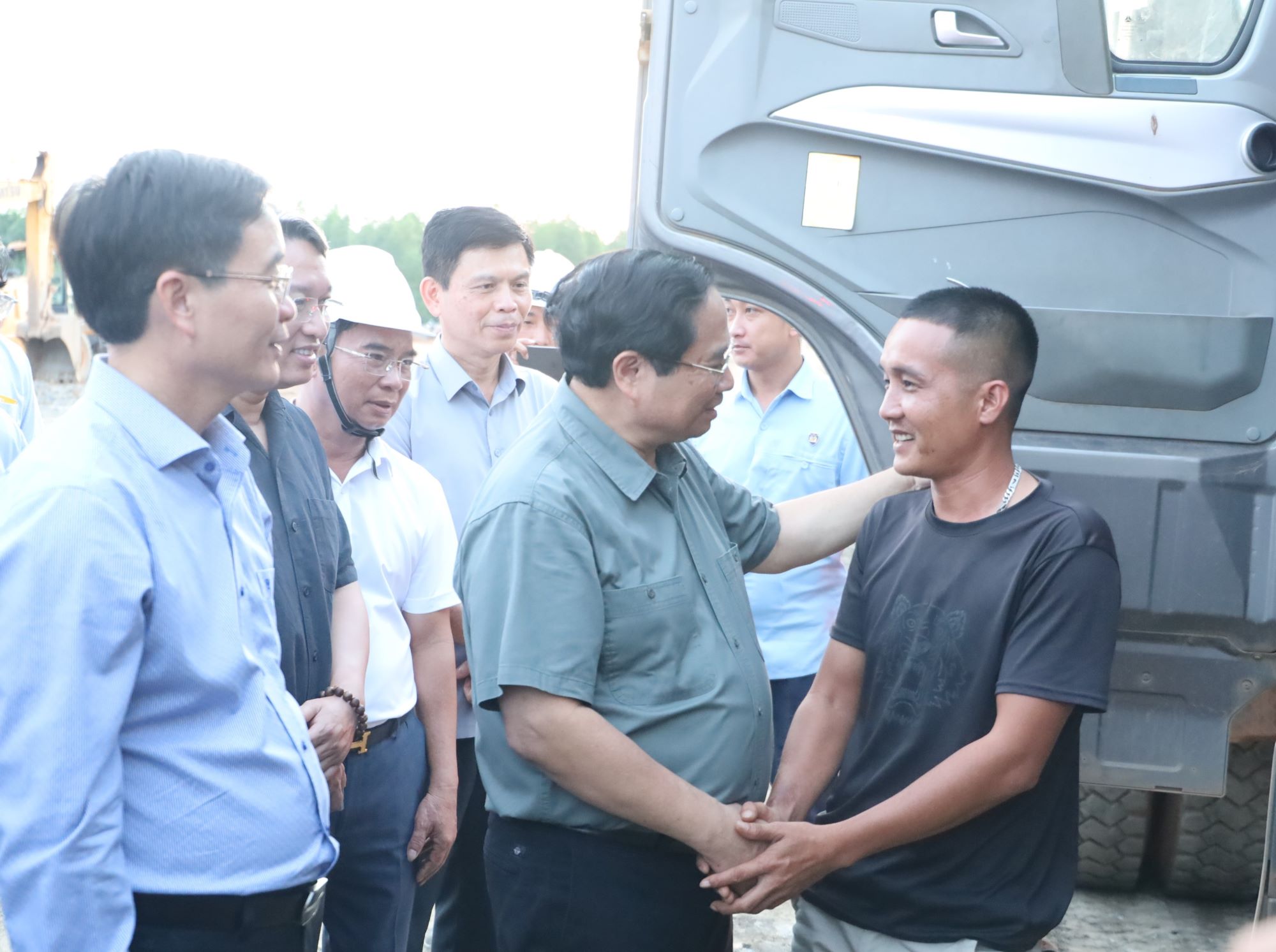 | Thủ tướng Chính phủ Phạm Minh Chính động viên, thăm hỏi công nhân, người lao động trên công trường |