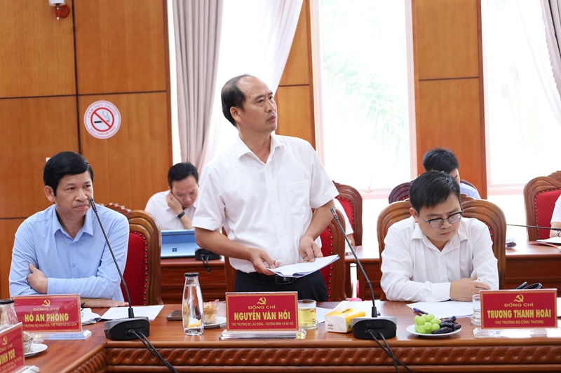 | Lãnh đạo Bộ Lao động, Thương Binh và Xã hội tham gia ý kiến tại buổi làm việc |