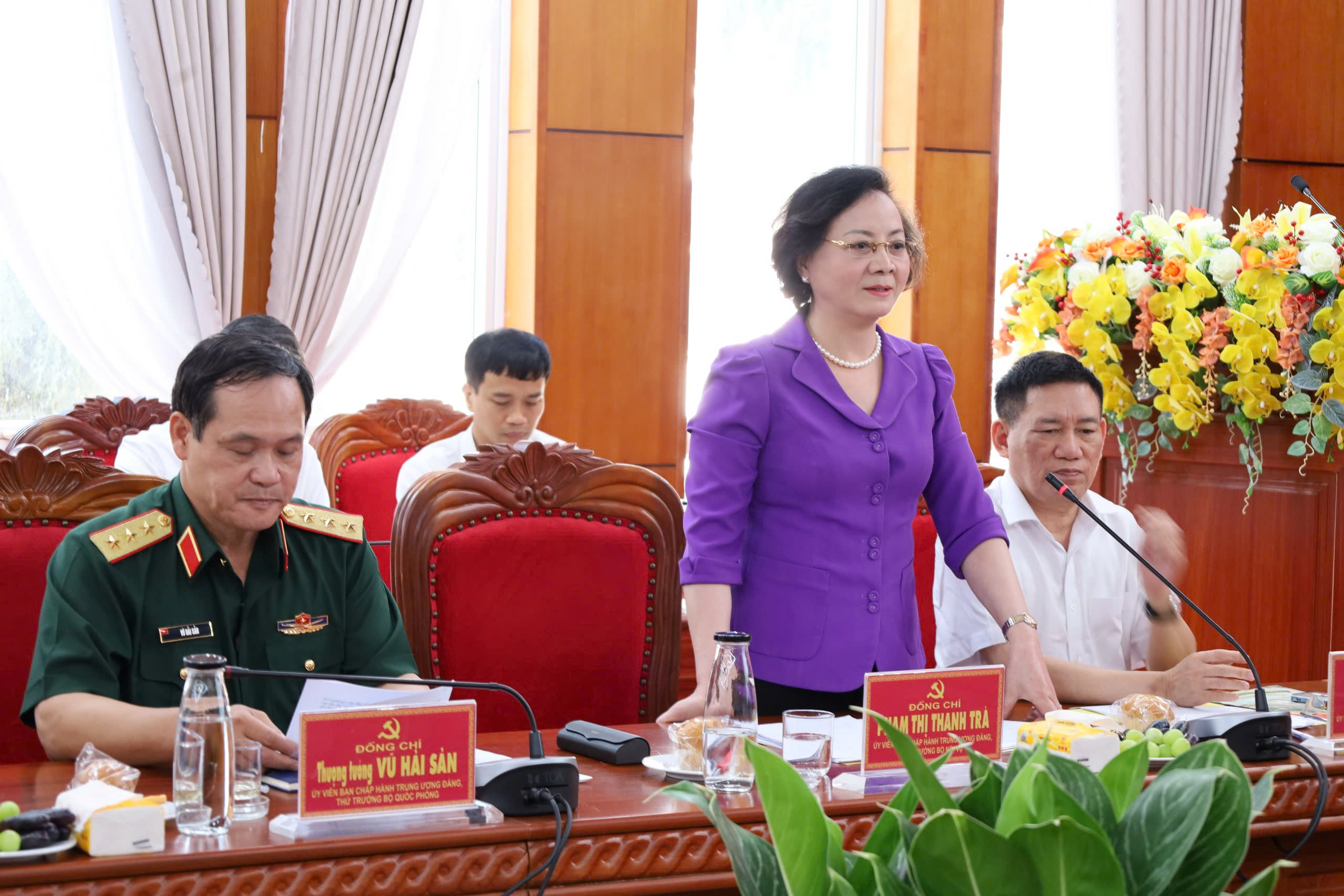 | Bộ trưởng Bộ Nội vụ Phạm Thị Thanh Trà đề nghị tỉnh rà soát đánh giá cán bộ là người dân tộc thiểu số toàn tỉnh, chú trọng cải cách hành chính, nâng cao năng lực cán bộ cấp cơ sở vững mạnh trong nhiệm kỳ tới |