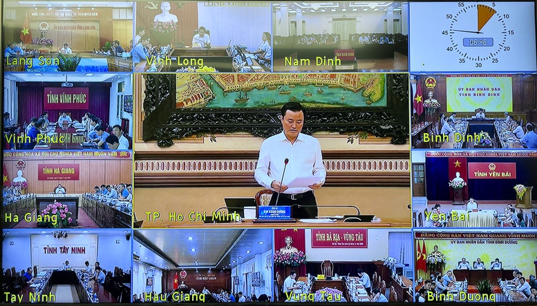 | Cuộc họp được kết nối với đầu cầu các địa phương. Ảnh chụp màn hình. |
