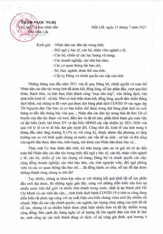 Trang thông tin điện tử Văn phòng UBND tỉnh trân trọng đăng toàn văn bức thư: