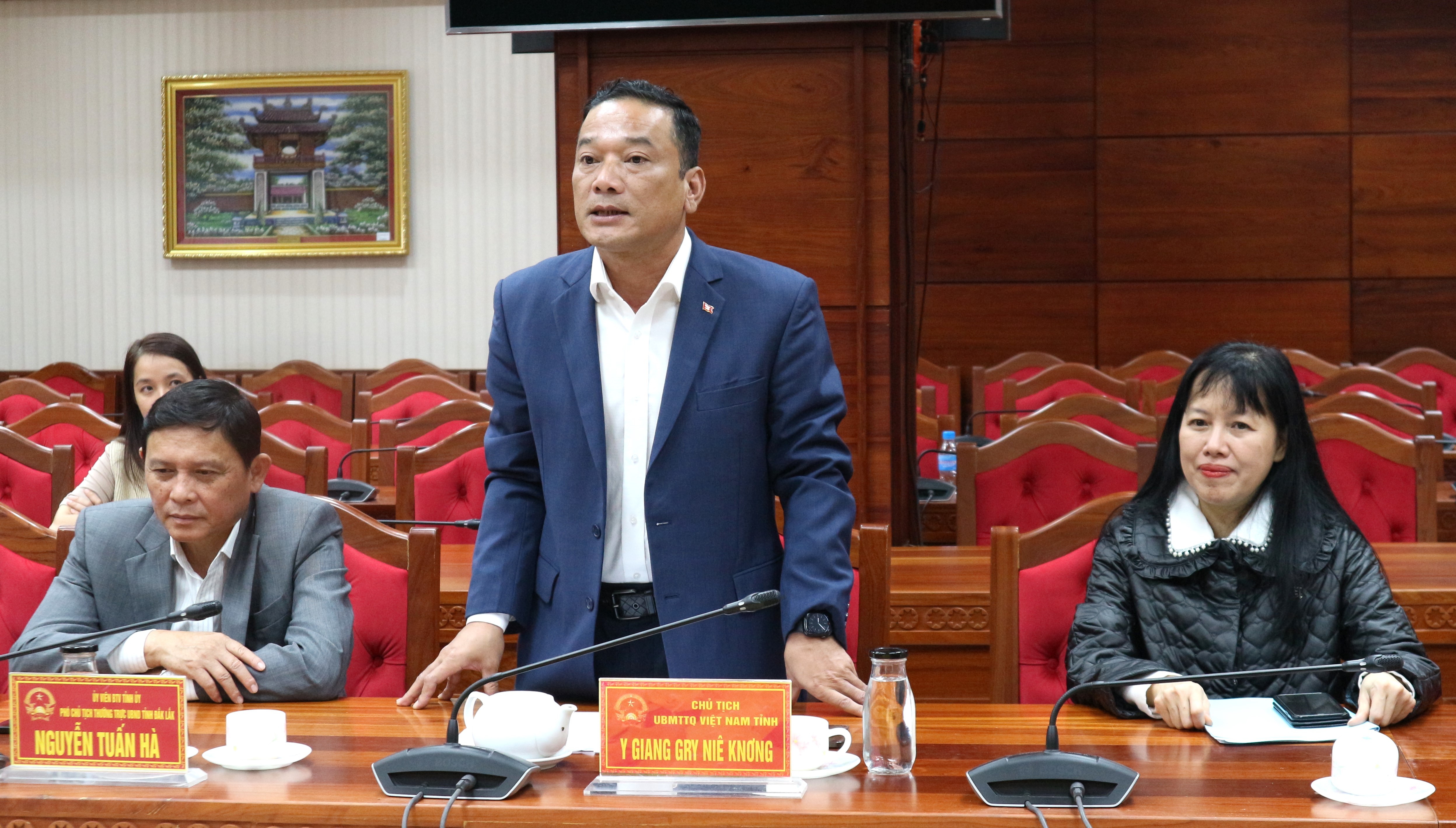 | Ông Y Giang Gry Niê Knơng, Chủ tịch UBMTTQ Việt Nam tỉnh phát biểu tại đáp từ |