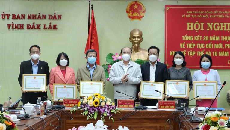 Nhân dịp này, Chủ tịch UBND tỉnh đã tặng Bằng khen cho 14 tập thể và 27 cá nhân đã có thành tích xuất sắc trong thực hiện Nghị quyết Trung ương 5 khóa IX, về tiếp tục đổi mới, phát triển và nâng cao hiệu quả và thi hành Luật HTX năm 2012.