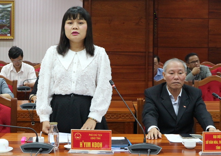 | Phó Chủ tịch UBND tỉnh Đắk Lắk H'Yim Kđoh phát biểu tại buổi làm việc |