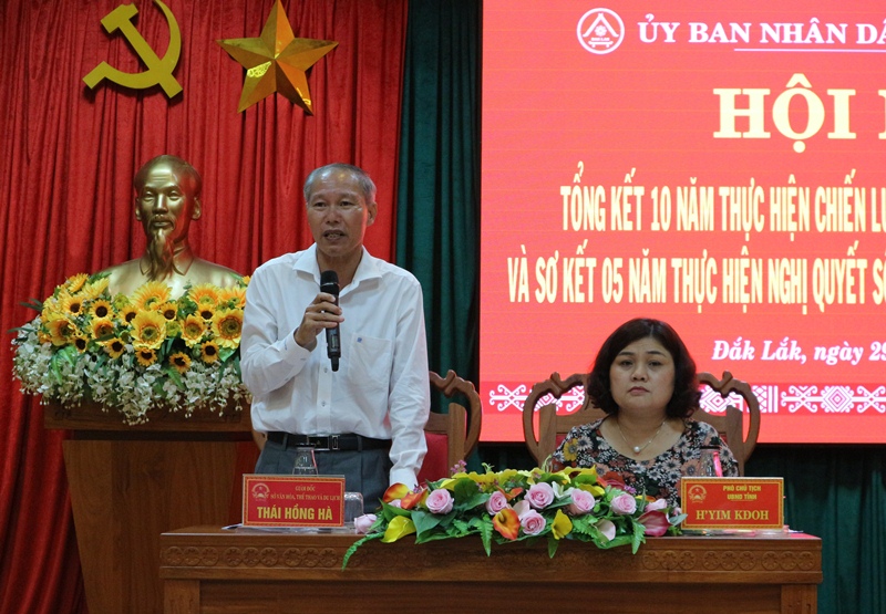 Phát biểu kết luận hội nghị, Phó Chủ tịch UBND tỉnh H’Yim Kđoh ghi nhận, biểu dương những kết quả đã đạt được của các sở, ngành, địa phương và nhân dân tỉnh trong việc phát huy, giữ gìn văn hóa Việt Nam đậm đà bản sắc dân tộc. Thời gian tới, đồng chí tỉnh đề nghị toàn tỉnh tiếp tục xây dựng chiến lược phát triển văn hóa trên địa bàn tỉnh đến năm 2030; đẩy mạnh công tác bảo tồn, phát huy truyền thống văn hóa tốt đẹp của dân tộc, tiếp thu có chọn lọc nền tinh hoa văn hóa thế giới; xây dựng môi trường văn hóa lành mạnh, văn minh, chú trọng xây dựng con người có lối sống văn hóa tiến bộ, gắn với thực hiện tốt việc “Học tập, làm theo tấm gương tư tưởng, đạo đức phong cách Hồ Chí Minh”; nâng cấp hoàn thiện cơ sở vật chất, đa dạng hóa, hiện đại hóa hệ thống thiết chế văn hóa các cấp; nâng cao chất lượng phong trào “Toàn dân đoàn kết xây dựng đời sống văn hóa”, xây dựng tốt nếp sống văn minh trong việc cưới, việc tang và lễ hội, xây dựng danh hiệu văn hóa ở gia đình, thôn, buôn, tổ dân phố…