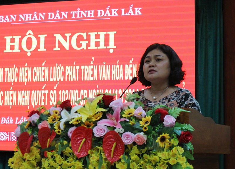 Đối với Nghị quyết 102/NQ-CP của Chính phủ về “Xây dựng và phát triển văn hóa, con người Việt Nam đáp ứng nhu cầu phát triển bền vững đất nước”, tỉnh Đắk Lắk đã ban hành nhiều văn bản, quan tâm đào tạo về lý luận chính trị cho 46.297 cán bộ, công chức, viên chức; 100% địa phương giữ vững kết quả xóa mù chữ, phổ cập giáo dục, dạy kỹ năng sống cho các học sinh, sinh viên. Thực hiện tốt chính sách thu hút, đãi ngộ đối với lực lượng văn, nghệ sĩ có những đóng góp tích cực cho sự nghiệp phát triển văn hóa, nghệ thuật của tỉnh trong thời kỳ mới…