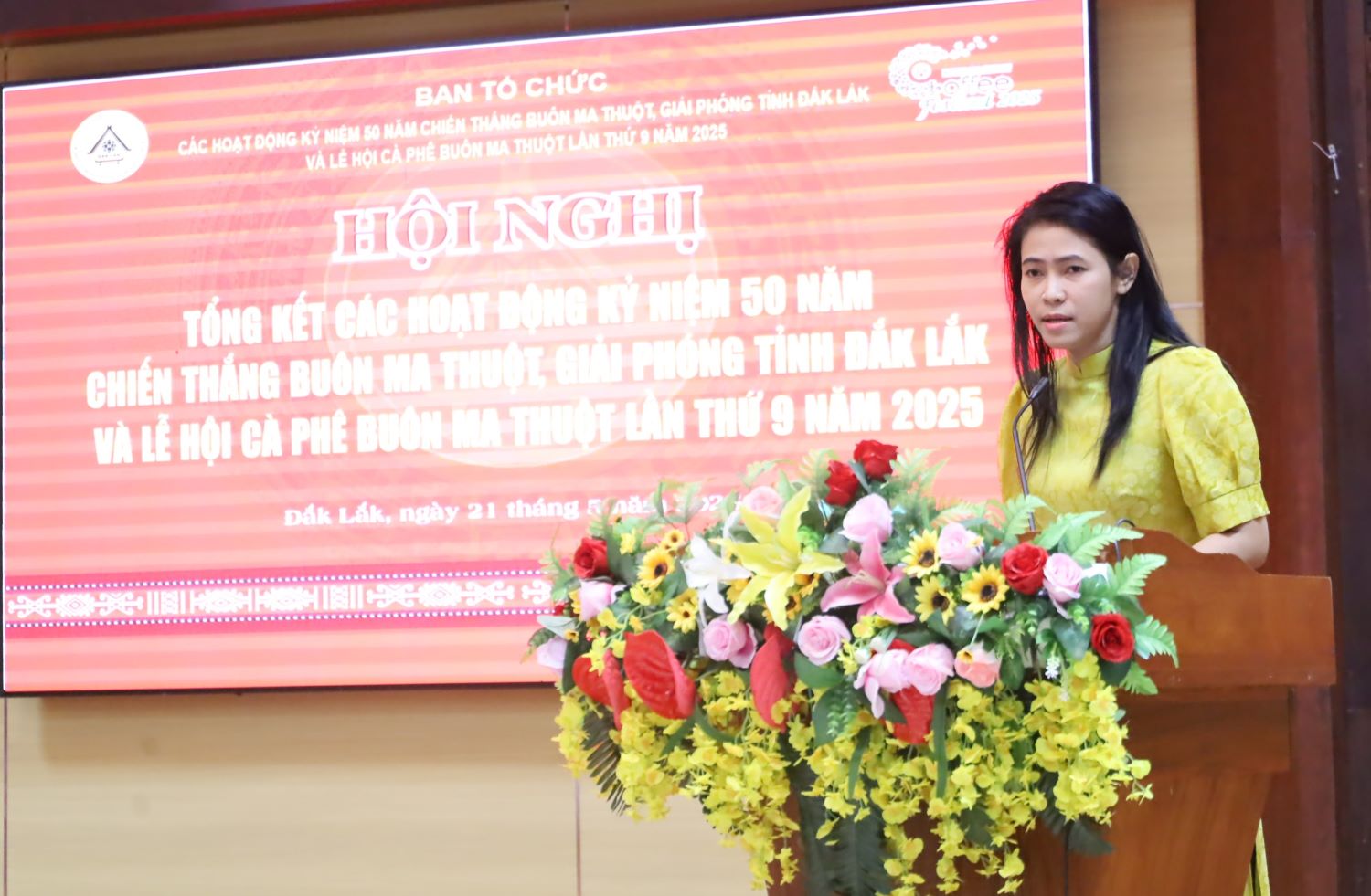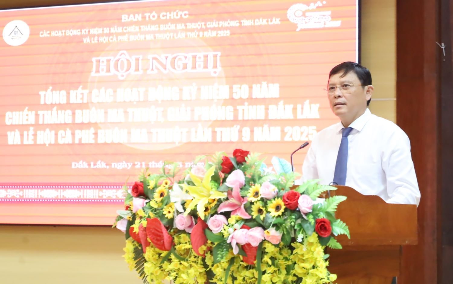 Ngày 21/5, Ban tổ chức các hoạt động kỷ niệm 50 năm Chiến thắng Buôn Ma Thuột, giải phóng tỉnh Đắk Lắk (10/3/1975- 10/3/2025) và Lễ hội Cà phê Buôn Ma Thuột lần thứ 9 năm 2025 (gọi tắt là Ban tổ chức) đã tổ chức Hội nghị tổng kết các hoạt động kỷ niệm và Lễ hội.