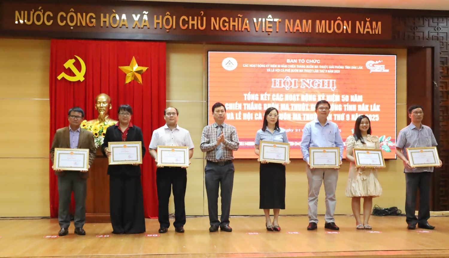 Ghi nhận những đóng góp của các tổ chức, cá nhân vào thành công của các hoạt động kỷ niệm và Lễ hội, UBND tỉnh đã tặng Bằng khen cho 18 tập thể, 21 cá nhân vì đã có thành tích xuất sắc trong phong trào thi đua đặc biệt Kỷ niệm 50 năm chiến thắng Buôn Ma Thuột, giải phóng tỉnh Đắk Lắk; tặng Bằng khen cho 76 tập thể và 144 cá nhân vì đã có thành tích trong Lễ hội Cà phê Buôn Ma Thuột lần thứ 9 năm 2025.