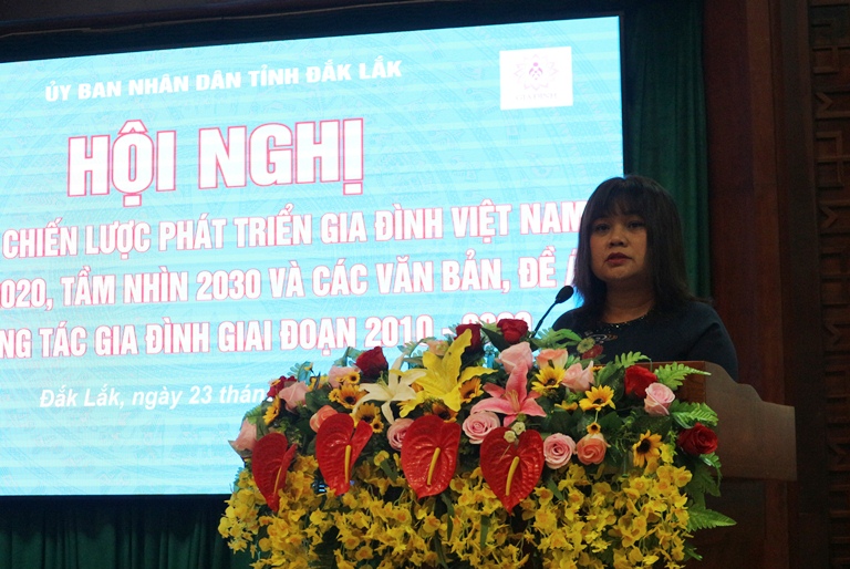 Phát biểu kết luận hội nghị, Phó Chủ tịch UBND tỉnh H’Yim Kđoh đề nghị các cấp, các ngành, địa phương trong thời gian tới tiếp tục thực hiện hiệu quả Luật Phòng, chống bạo lực gia đình, Nghị quyết số 33-NQ/TW, ngày 9/6/2014 của Hội nghị Trung ương 9, khóa XI về xây dựng và phát triển văn hóa, con người Việt Nam đáp ứng yêu cầu phát triển bền vững đất nước; tiếp tục xây dựng kế hoạch triển khai thực hiện tốt Chiến lược phát triển gia đình Việt Nam; tăng cường công tác tuyên truyền, giáo dục, vận động, triển khai các giải pháp can thiệp phòng chống bạo lực gia đình; xây dựng ngày càng nhiều các mô hình, phong trào, câu lạc bộ phòng chống bạo lực gia đình; phối hợp chặt chẽ và phát triển ngày càng rộng khắp phong trào xây dựng gia đình ấm no, bình đẳng, tiến bộ, hạnh phúc, xứng đáng là hạt nhân tốt của xã hội.