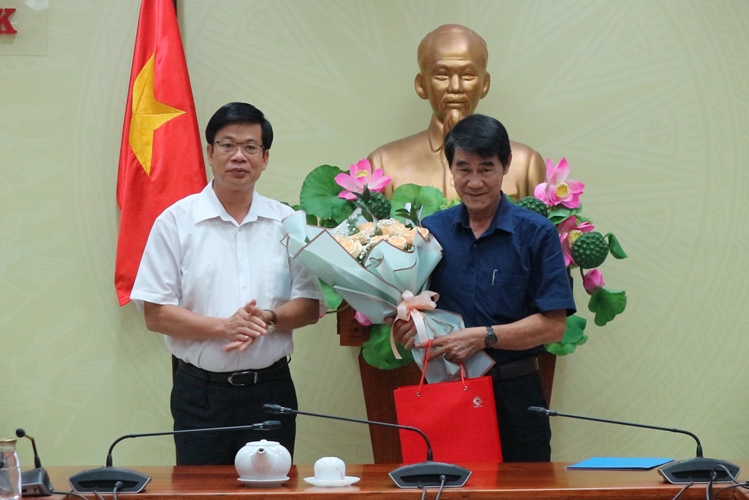 | Chánh Văn phòng UBND tỉnh Bùi Hồng Quý trao quyết định nghỉ hưu hưởng chế độ bảo hiểm xã hội cho đồng chí Vũ Văn Tùng |