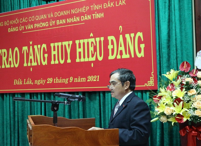 Phát biểu tại buổi lễ, Phó Bí thư Đảng ủy Khối các cơ quan và Doanh nghiệp tỉnh Trần Quang Tân nhấn mạnh: Việc trao tặng Huy hiệu Đảng là sự ghi nhận của Đảng đối với quá trình cống hiến của Đảng viên cho sự nghiệp cách mạng của Đảng. Đây không chỉ là vinh dự của cá nhân đồng chí Phạm Ngọc Nghị mà còn là vinh dự của Đảng bộ Văn phòng UBND tỉnh để từ đó, các Đảng viên noi theo, tiếp tục rèn luyện, phấn đấu, hoàn thành xuất sắc nhiệm vụ được giao. Trong 30 năm qua, cá nhân đồng chí Phạm Ngọc Nghị đã luôn phấn đấu, tu dưỡng, rèn luyện và tuyết đối trung thành với mục tiêu lý tưởng cách mạng của Đảng, chấp hành nghiêm chỉnh các cương lĩnh chính trị, Điều lệ Đảng Cộng sản Việt Nam; có đạo đức, lối sống lành mạnh, gắn bó mật thiết với quần chúng nhân dân, hoàn thành tốt nhiệm vụ của người Đảng viên. Phó Bí thư Đảng ủy khối các cơ quan và Doanh nghiệp tỉnh tỉnh hy vọng Đảng viên được nhận Huy hiệu Đảng sẽ tiếp tục nêu cao tinh thần chiến sỹ cách mạng, tiên phong gương mẫu, luôn luôn là tấm gương cho thế hệ trẻ noi theo, cống hiến hết mình cho sự nghiệp của Đảng trên từng vị trí công tác, lãnh đạo, chỉ đạo thực hiện thắng lợi nhiệm vụ của Đảng bộ Văn phòng UBND tỉnh đã đề ra, xây dựng Đảng ủy khối Các cơ quan tỉnh và Doanh nghiệp tỉnh, Đảng bộ tỉnh Đắk Lắk ngày càng vững mạnh.