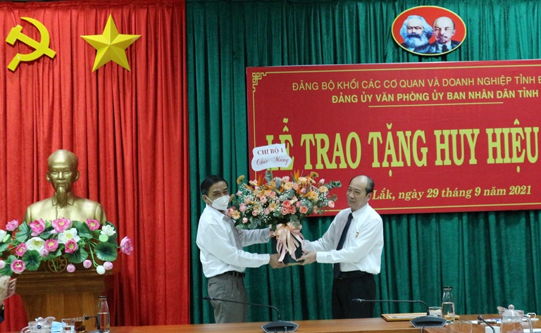 | Đảng ủy Văn phòng UBND tỉnh tặng hoa chúc mừng |