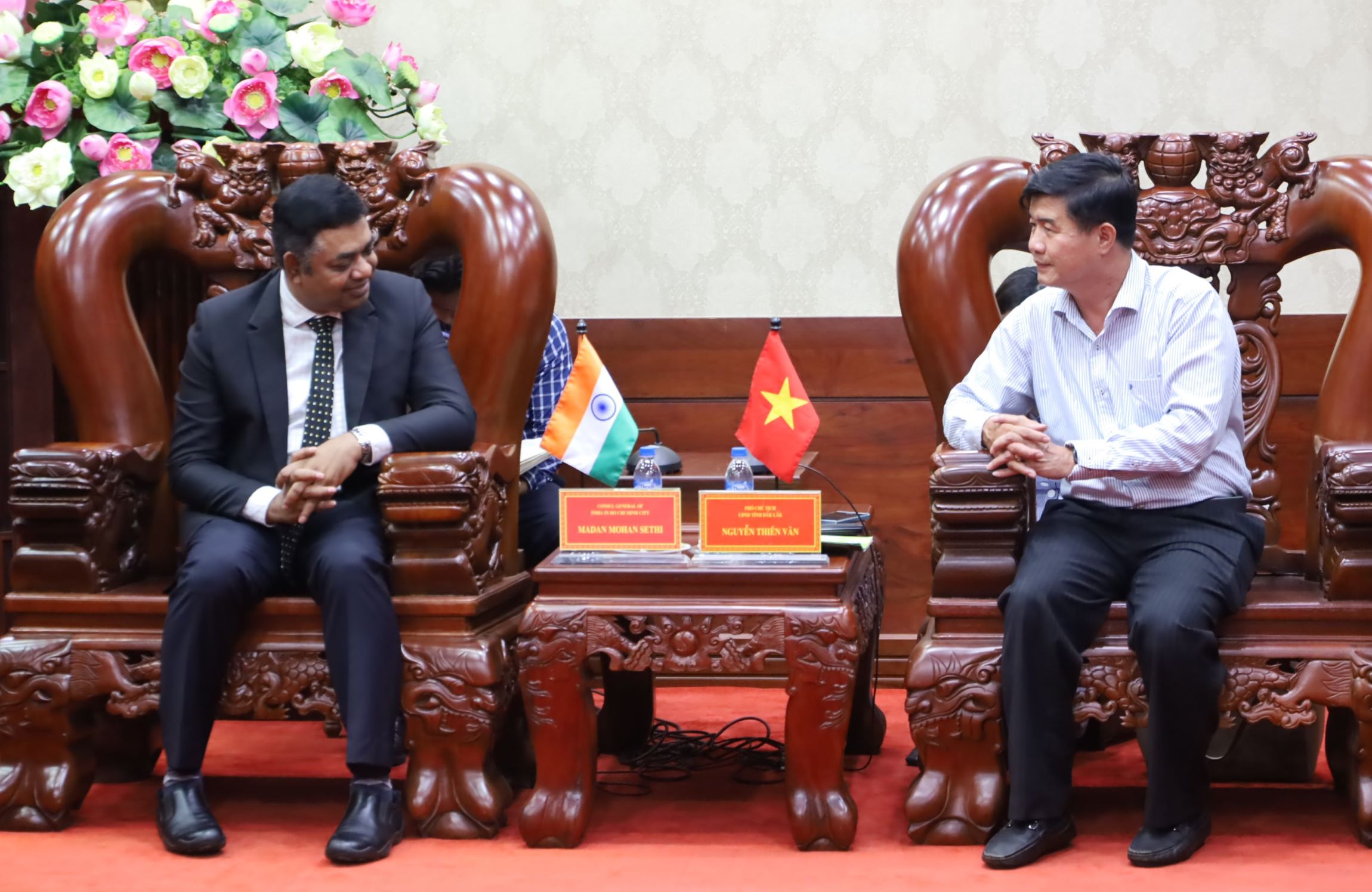 | Phó Chủ tịch UBND tỉnh Nguyễn Thiên Văn trò chuyện cùng ông Madan Mohan Sethi - Tổng Lãnh sự Ấn Độ tại TP. Hồ Chí Minh |