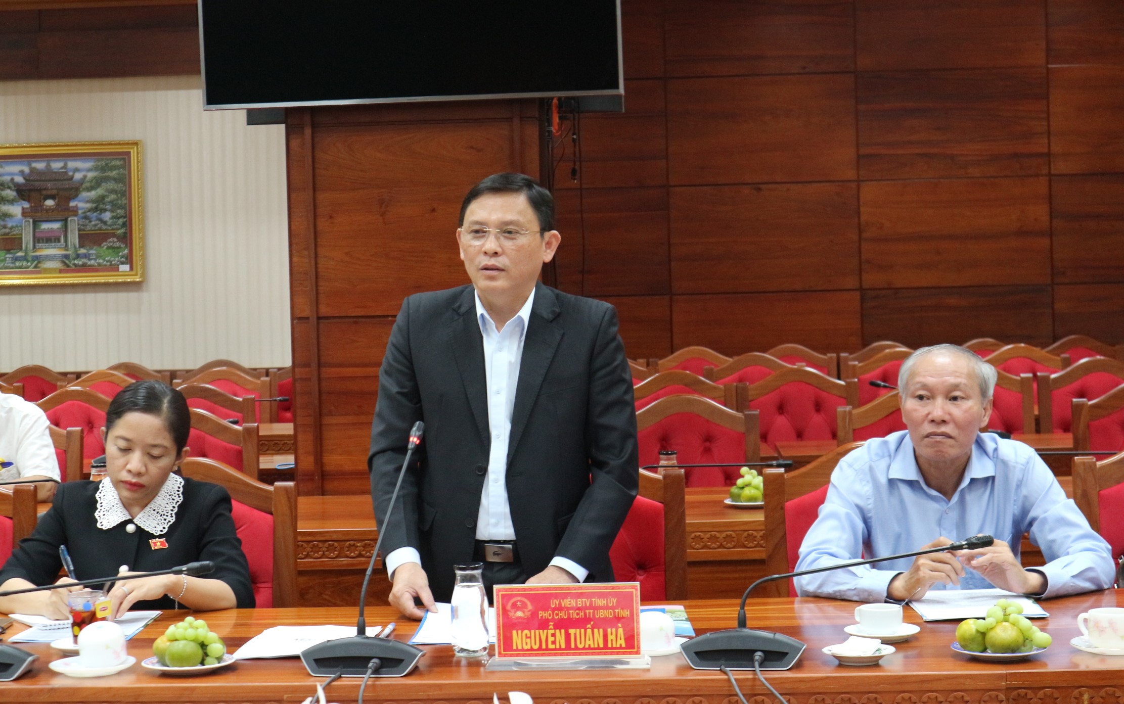 | Phó Chủ tịch Thường trực UBND tỉnh Đắk Lắk Nguyễn Tuấn Hà phát biểu tại buổi làm việc |