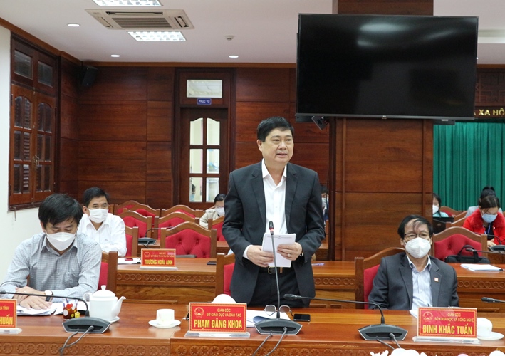 | Giám đốc Sở Giáo dục và Đào tạo Phạm Đăng Khoa tham gia thảo luận |