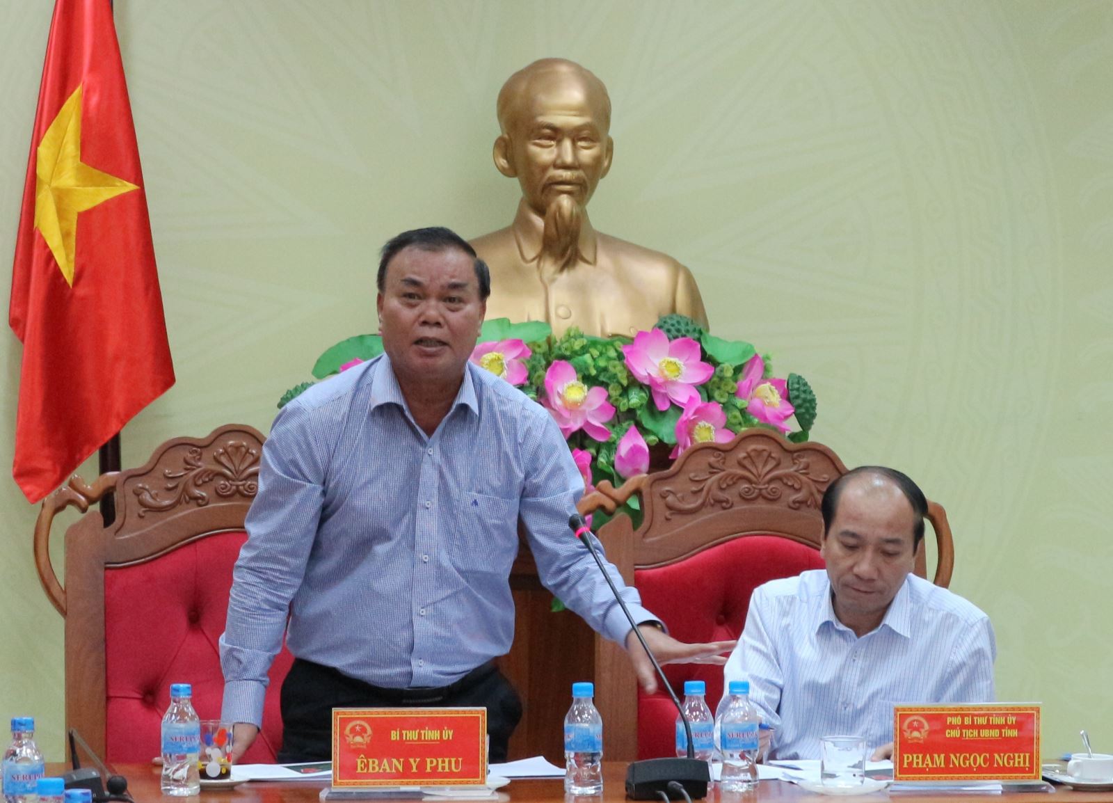 | Bí thư Tỉnh ủy Êban Y Phu phát biểu tại buổi làm việc |