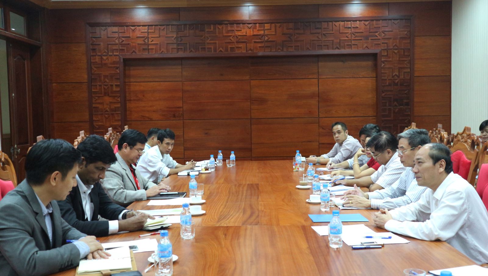 | Chủ tịch UBND tỉnh - Phạm Ngọc Nghị trao đổi thông tin tại buổi làm việc |