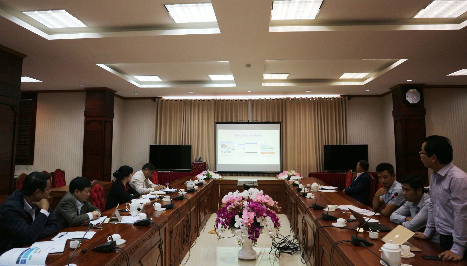 Sáng 19/12, UBND tỉnh đã có buổi làm việc để nghe Công ty tư vấn và giải pháp công nghệ thông tin Toàn Cầu xanh - thành phố Đà Nẵng trình bày đề xuất, giải pháp triển khai chính quyền điện tử và hệ thống báo cáo chỉ tiêu kinh tế - xã hội tỉnh Đắk Lắk. Phó Chủ tịch UBND tỉnh Nguyễn Tuấn Hà chủ trì buổi làm việc cùng đại diện một số sở, ngành liên quan.