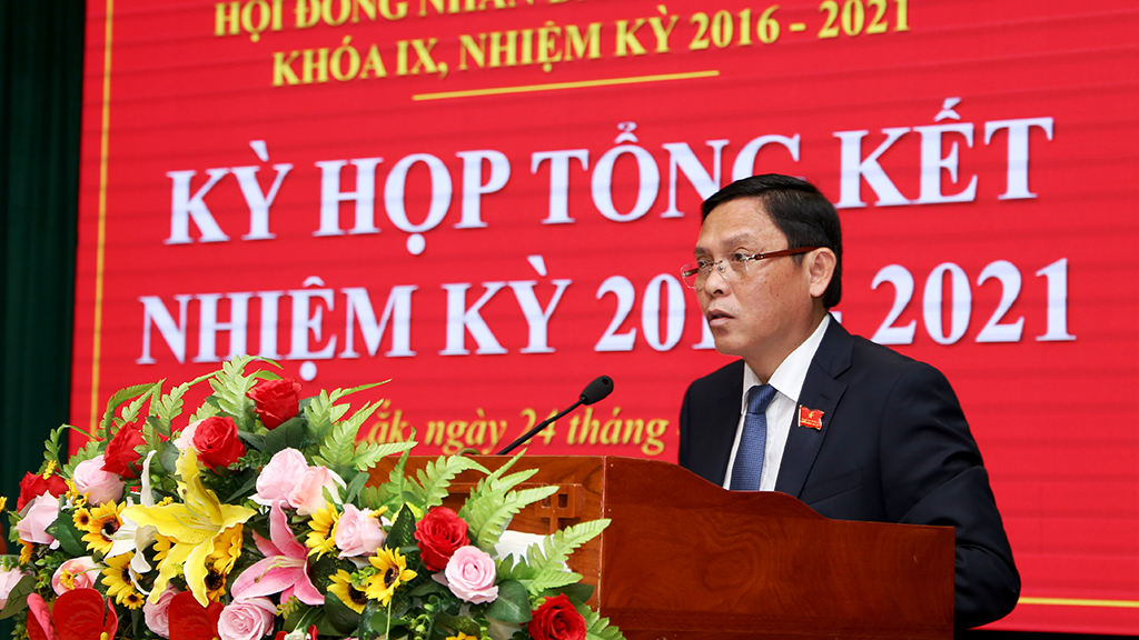 | Đồng chí Nguyễn Tuấn Hà - Phó Chủ tịch Thường trực UBND tỉnh báo cáo tình hình tổ chức và hoạt động của UBND các cấp nhiệm kỳ 2016 - 2021 tại Kỳ họp tổng kết 5 năm HĐND tỉnh |