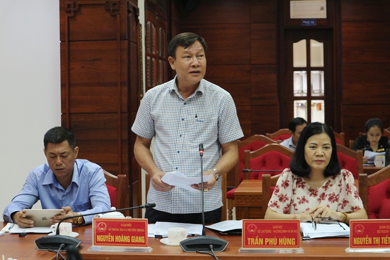 | Lãnh đạo Sở Lao động - Thương binh và xã hội trình bày nội dung dự thảo |