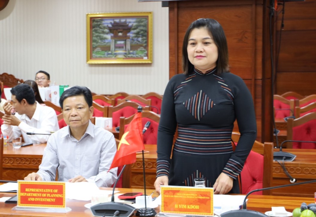 | Phó Chủ tịch UBND tỉnh H’Yim Kđoh phát biểu tại buổi làm việc |