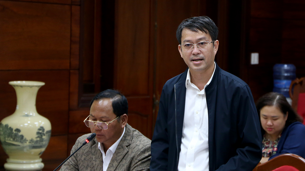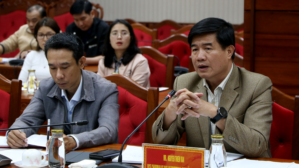 | Phó Chủ tịch UBND tỉnh Nguyễn Thiên Văn phát biểu tại buổi làm việc. |