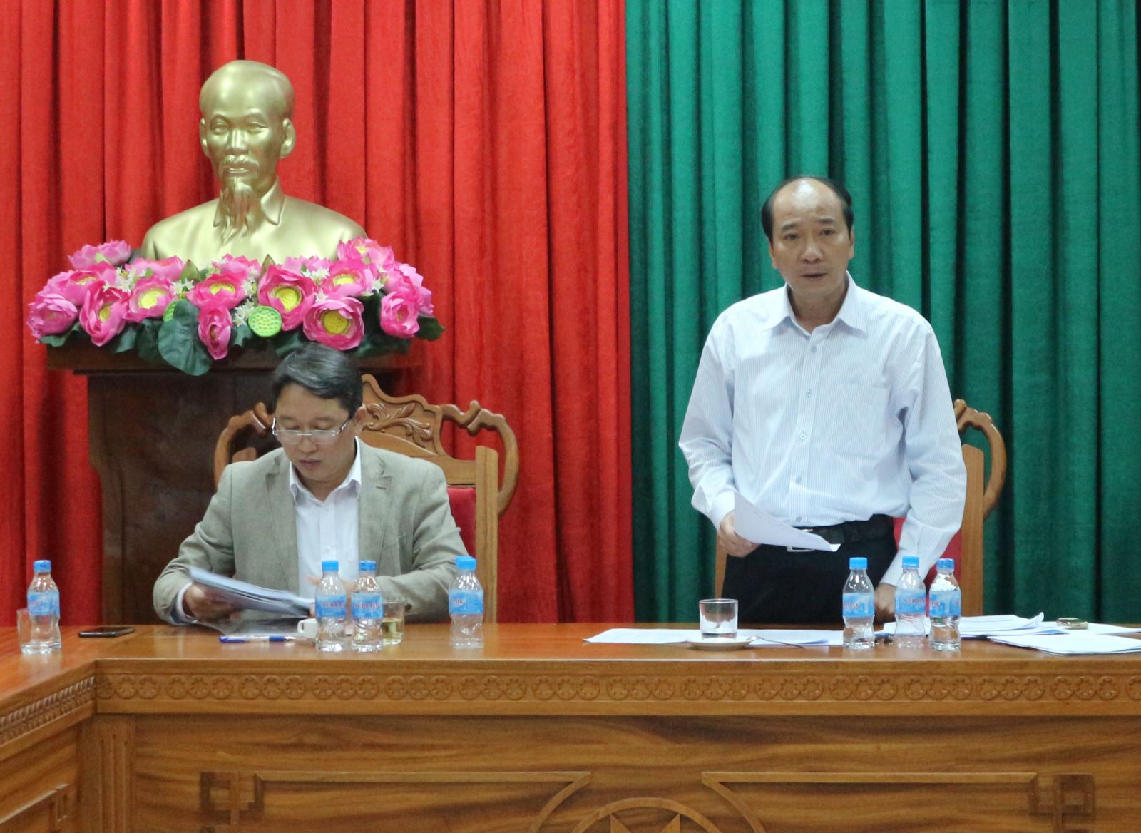 | Lãnh đạo Sở Kế hoạch và Đầu tư báo cáo tiến độ chuẩn bị hội nghị |