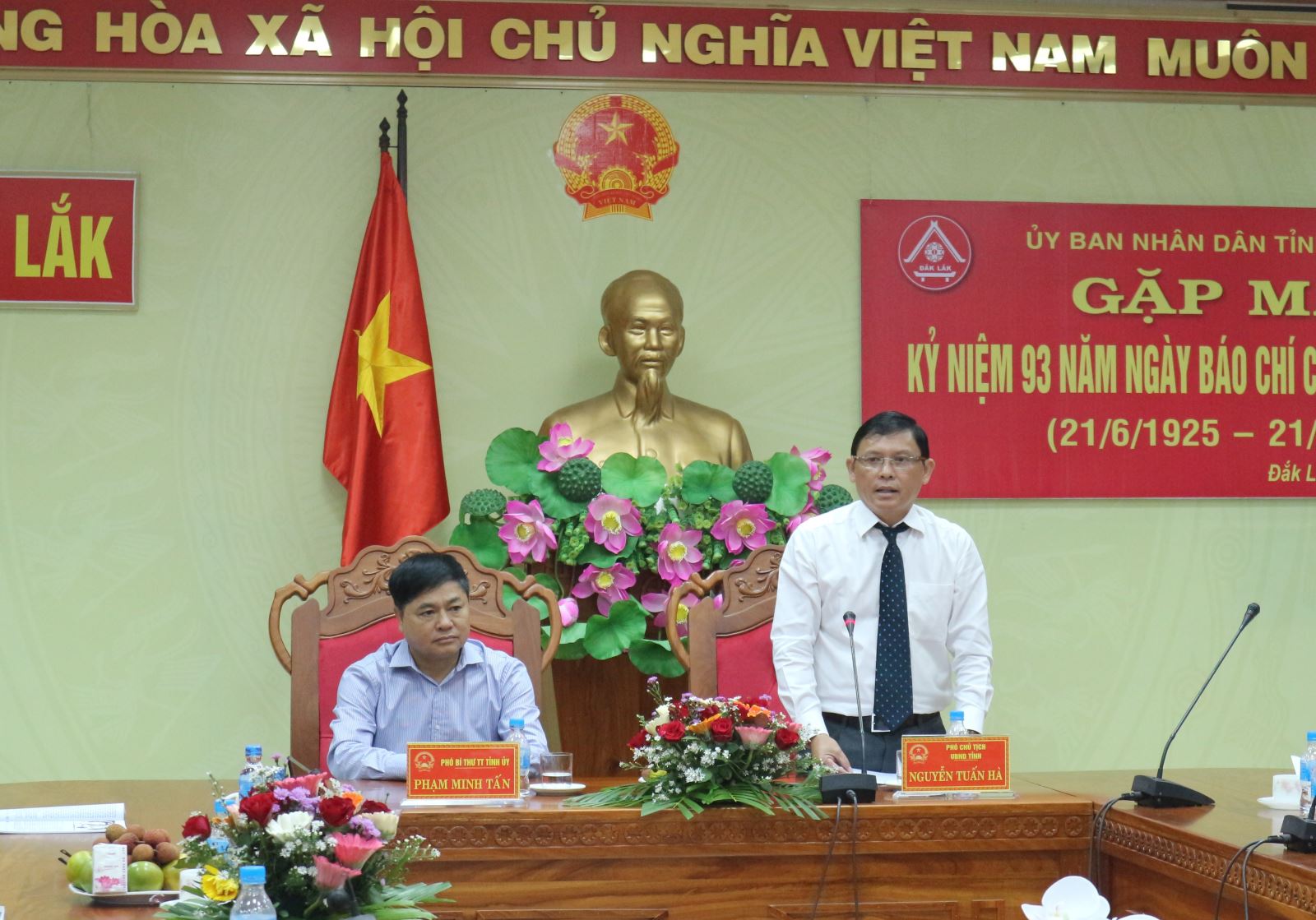 Sáng 20/6, UBND tỉnh tổ chức Gặp mặt Kỷ niệm 93 năm ngày Báo chí cách mạng Việt Nam (21/6/1925 - 21/6/2018). Tham dự buổi gặp mặt có Phó Bí thư Tỉnh ủy - Phạm Minh Tấn; Phó Chủ tịch UBND tỉnh - Nguyễn Tuấn Hà và đại diện các cơ quan thông tấn báo chí trên địa bàn tỉnh.