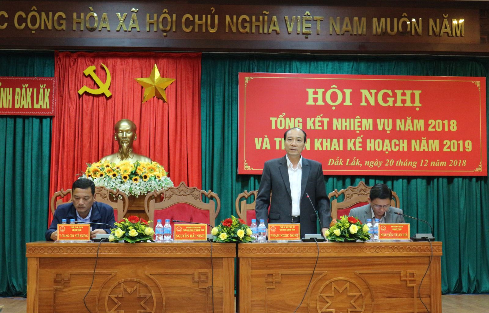 Phát biểu chỉ đạo tại hội nghị, Bí thư Tỉnh ủy Êban Y Phu ghi nhận và biểu dương những cố gắng, nỗ lực của tỉnh trong việc hoàn thành các chỉ tiêu, nhiệm vụ đã đề ra. Năm 2019 là năm “nước rút” thực hiện Nghị quyết Đảng bộ tỉnh lần thứ 16. Bên cạnh những nhiệm vụ đã đề ra, đồng chí yêu cầu các sở, ngành, địa phương tùy theo chức năng, nhiệm vụ tập trung thực hiện các nội dung như: tiếp tục thực hiện tái cơ cấu kinh tế; đổi mới mô hình tăng trưởng, tăng năng suất, tăng chất lượng; đẩy mạnh cải cách thủ tục hành chính, đơn giản hóa thủ tục hành chính để tạo điều kiện cho các thành phần doanh nghiệp có cơ hội đầu tư sản xuất, kinh doanh; huy động nguồn lực cho đầu tư phát triển; đôn đốc đẩy nhanh tiến độ giải ngân, thực hiện các dự án đã được phê duyệt; phối hợp làm tốt công tác quy hoạch, lập kế hoạch, đền bù, giải phóng mặt bằng; chỉ đạo, xây dựng các sản phẩm du lịch chất lượng cao, thực hiện thành công Lễ hội Cà phê Buôn Ma Thuột lần thứ 7 và hội nghị xúc tiến đầu tư Đắk Lắk năm 2019; tiếp tục triển khai các Đề án đổi mới, sắp xếp lại tổ chức bộ máy, tinh giản biên chế và cơ cấu lại đội ngũ công chức, viên chức theo tinh thần Nghị quyết Trung ương 6 (khóa XII).