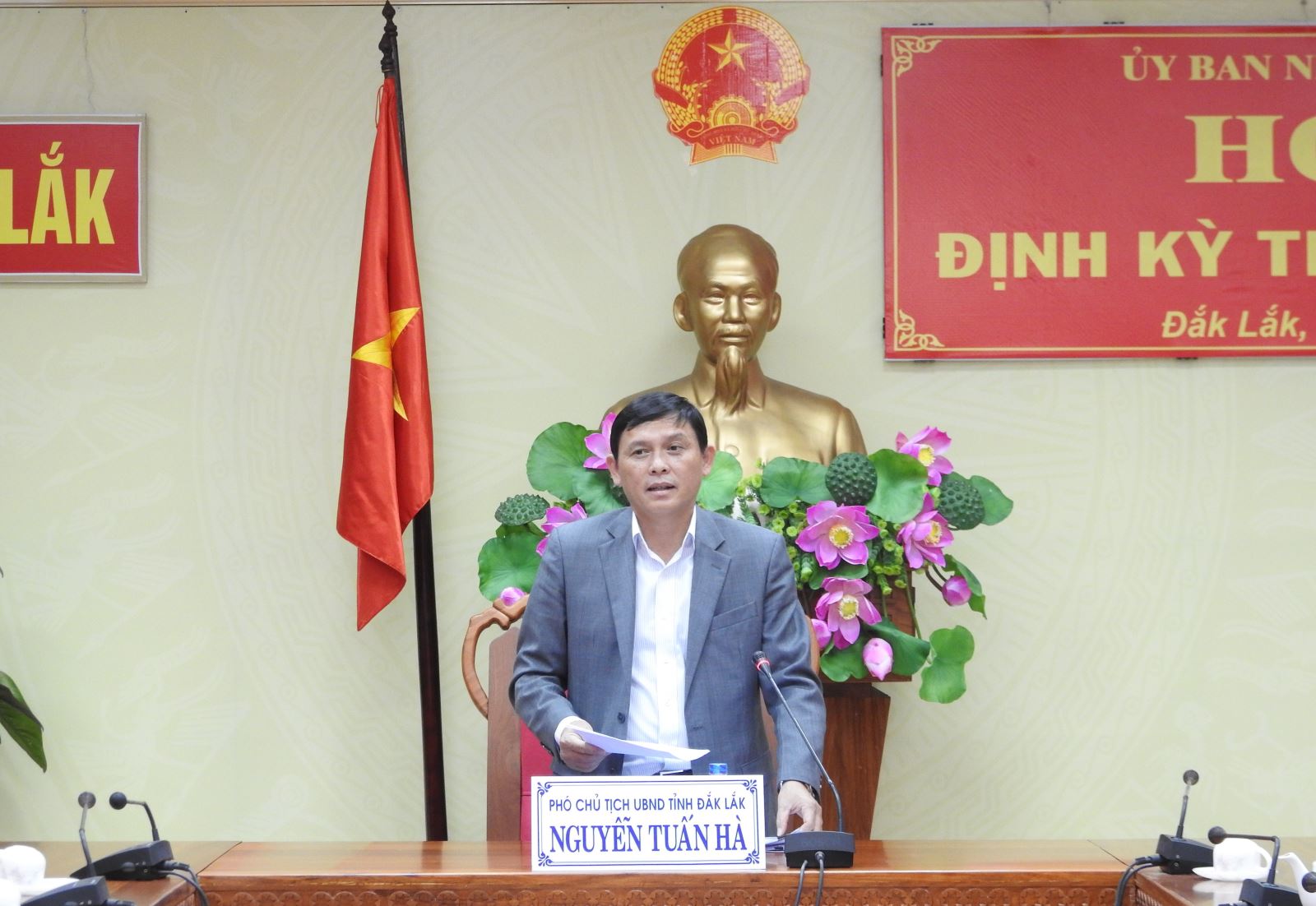 Phát biểu tại buổi họp báo, đồng chí Nguyễn Tuấn Hà - Phó Chủ tịch UBND tỉnh đã đề nghị 03 cơ quan là Công an tỉnh, Sở Tài nguyên và Môi trường, UBND thị xã Buôn Hồ sớm có thông tin, phản hồi các cơ quan thông tấn, báo chí về các nội dung liên quan đến bài viết “Phóng viên Nông thôn mới bị đe dọa khi tác nghiệp” đăng ngày 24/12/2017 trên Báo điện tử langmoi.vn (Tạp chí Nông thôn mơi trực thuộc Trung ương Hội Nông dân Việt Nam) và bài viết Nhiều lái xe “tố” cảnh sát giao thông Krông Búk có hành vi nhận “mãi lộ” đăng ngày 25/01/2018 trên Tạp chí điện tử Môi trường và Đô thị Việt Nam; Tạp chí điện tử Môi trường và Cuộc sống – Moitruong.net.vn ngày 02/01/2018 với bài Trạm trộn bê tông Asphatlt Đăk An xả khói, bụi “hủy hoại” môi trường; bài viết: Đắk Lắk: Ép dân đóng tiền xây dựng đường giao thông nông thôn mới trên Tạp chí điện tử Giao thông vận tải đăng ngày 24/01/2018. Đồng thời, trực tiếp giải đáp, trả lời phóng viên Báo Nhân dân về thông tin Vườn quốc gia Yok Đôn bị phá 22 gốc cây cổ thụ cà te tại địa bàn giáp ranh giữa hai huyện Buôn Đôn và Ea Súp và câu hỏi của phóng viên Đài Tiếng nói Việt Nam (VOV) về đơn khiếu nại của người dân huyện Ea Kar về việc đền bù, giải tỏa xây dựng hồ Krông Pắc Thượng. Kết thúc buổi làm việc, đồng chí đã thay mặt lãnh đạo UBND tỉnh chúc các phóng viên đang công tác tại các cơ quan thông tấn báo chí đón Tết Mậu Tuất 2018 vạn sự như ý, an khang thịnh vượng./.