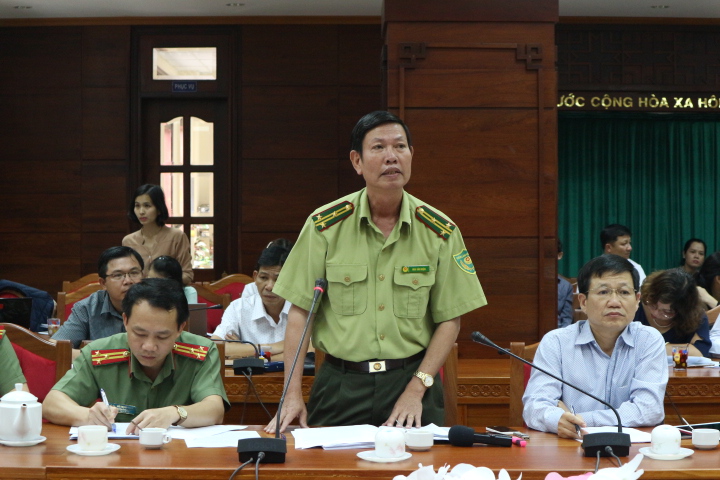 Đại diện Chi Cục kiểm lâm tỉnh báo cáo tại buổi họp báo |