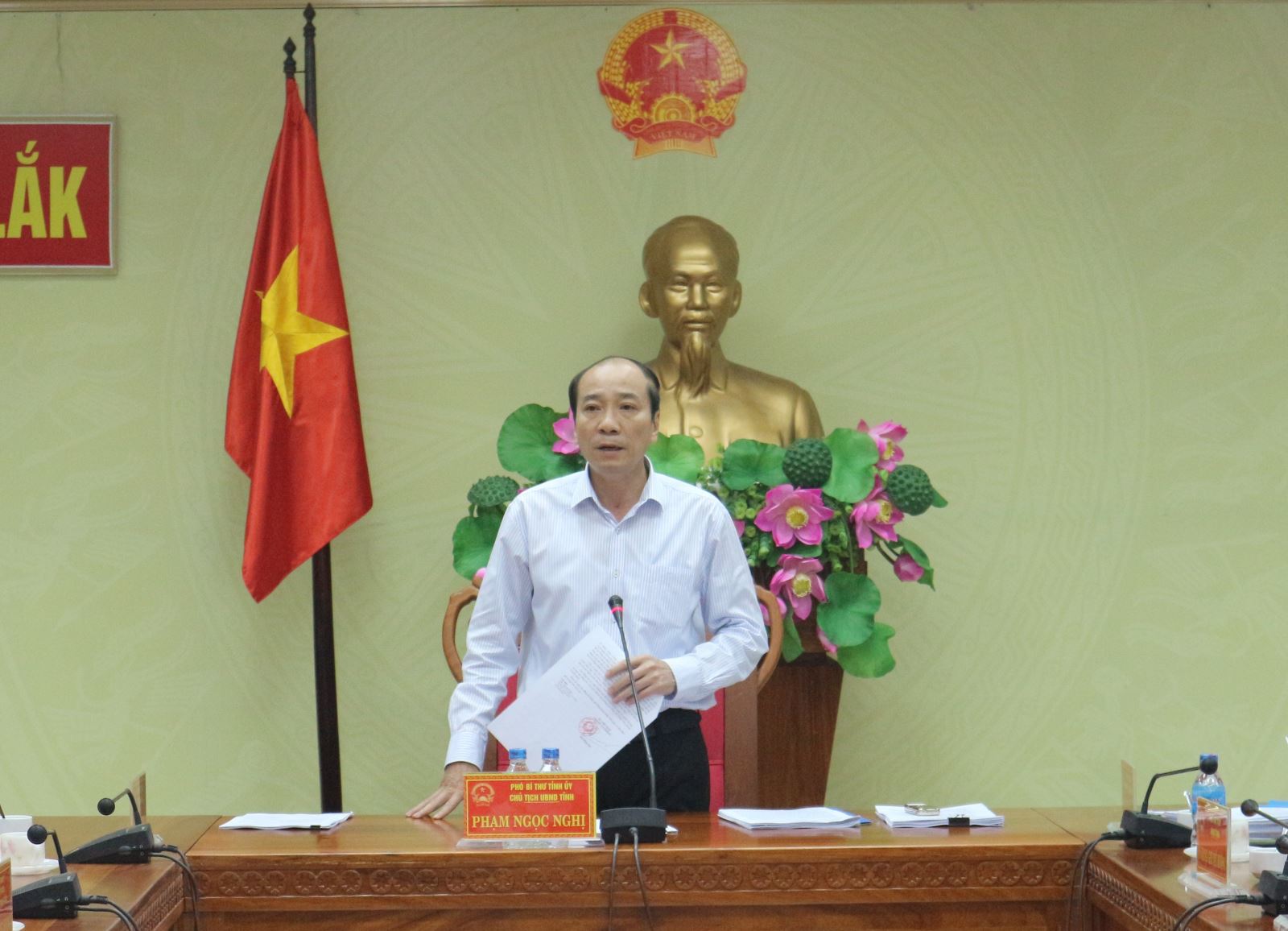 | Chủ tịch UBND tỉnh - Phạm Ngọc Nghị chủ trì cuộc họp |