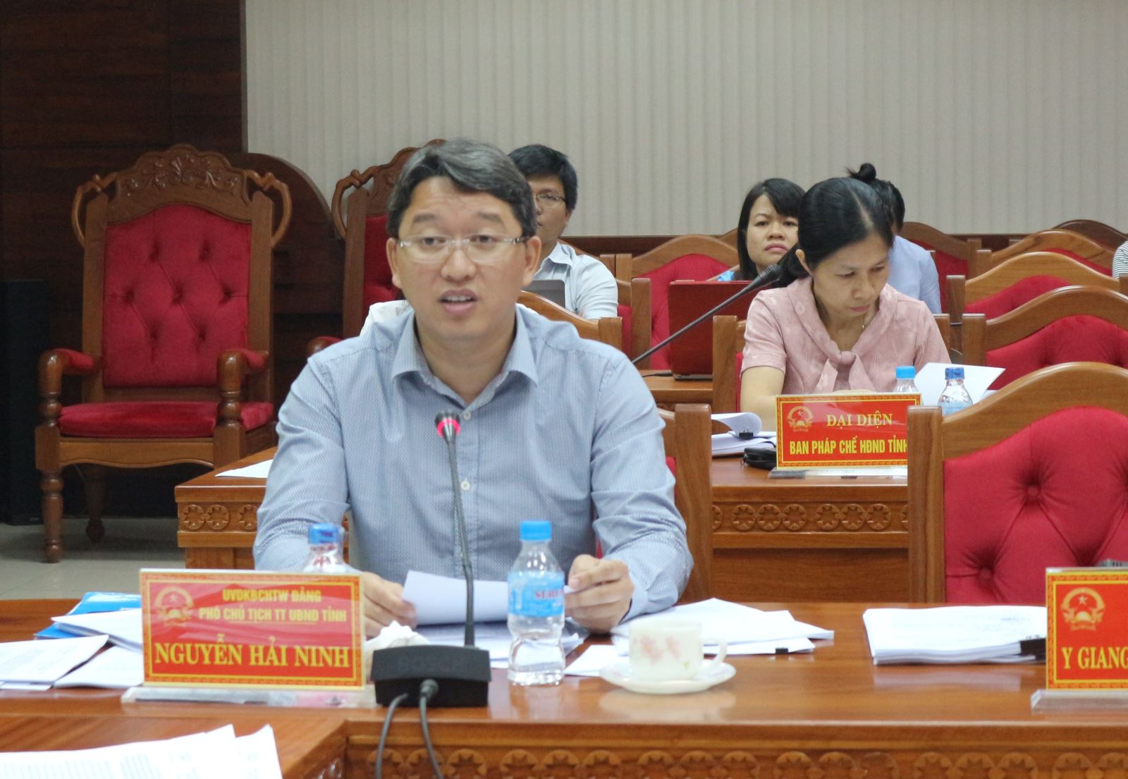 | Phó Chủ tịch UBND tỉnh - Nguyễn Hải Ninh góp ý vào dự thảo Nghị quyết |