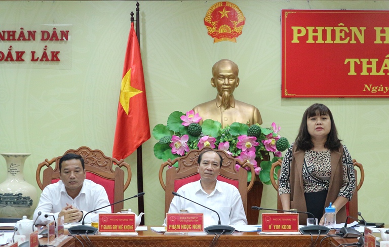 | Phó Chủ tịch UBND tỉnh H'Yim Kđoh phát biểu ý kiến |