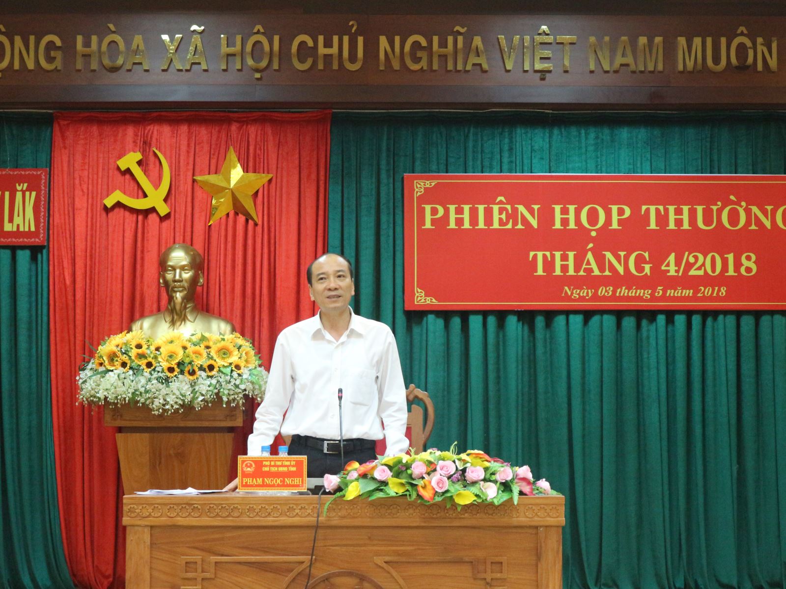 Sáng ngày 03/5/2018, UBND tỉnh tổ chức Phiên họp thường kỳ tháng 4/2018. Phó Bí thư Tỉnh ủy, Chủ tịch UBND tỉnh - Phạm Ngọc Nghị chủ trì phiên họp cùng đại diện lãnh đạo HĐND, UBND, Văn phòng UBND; lãnh đạo các sở, ban, ngành, địa phương cùng tham dự.
