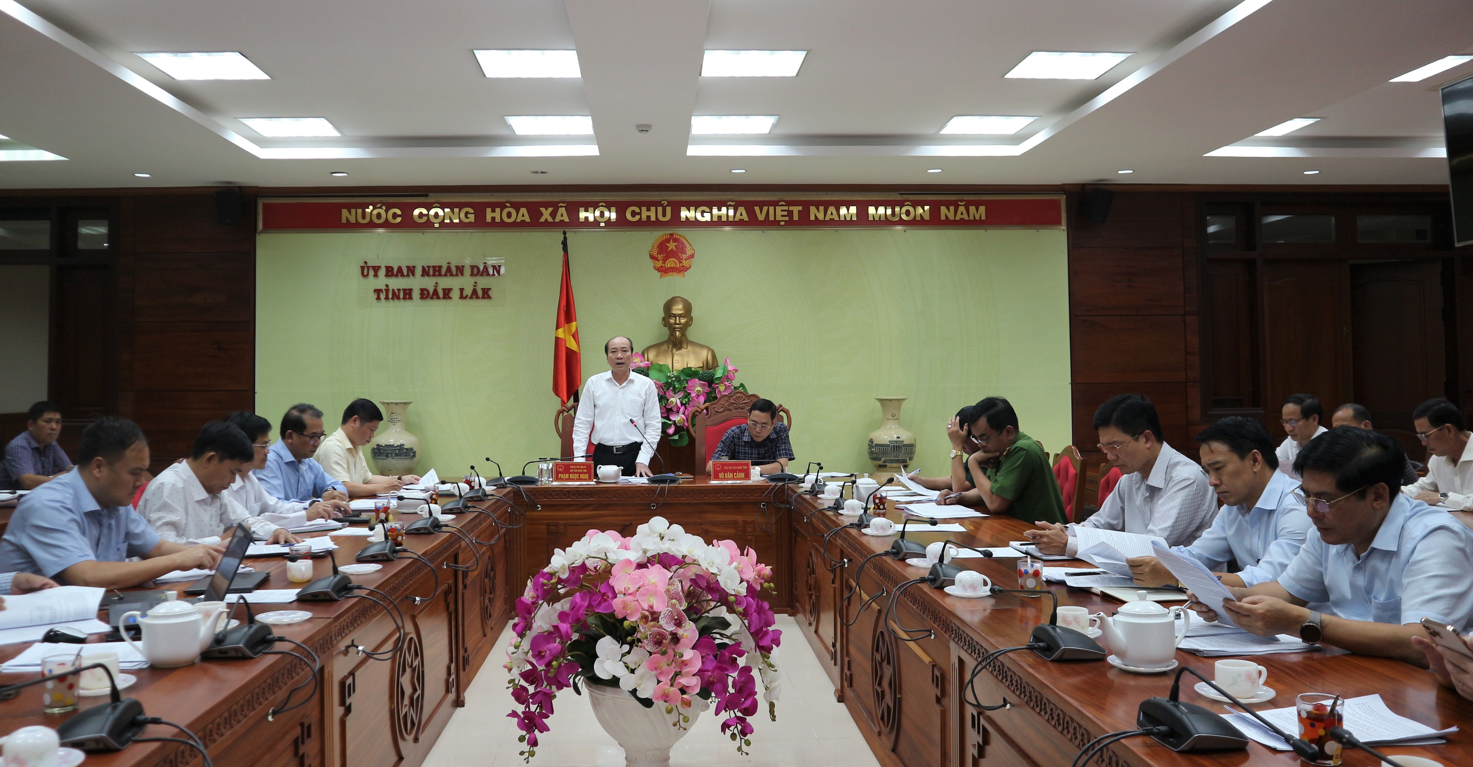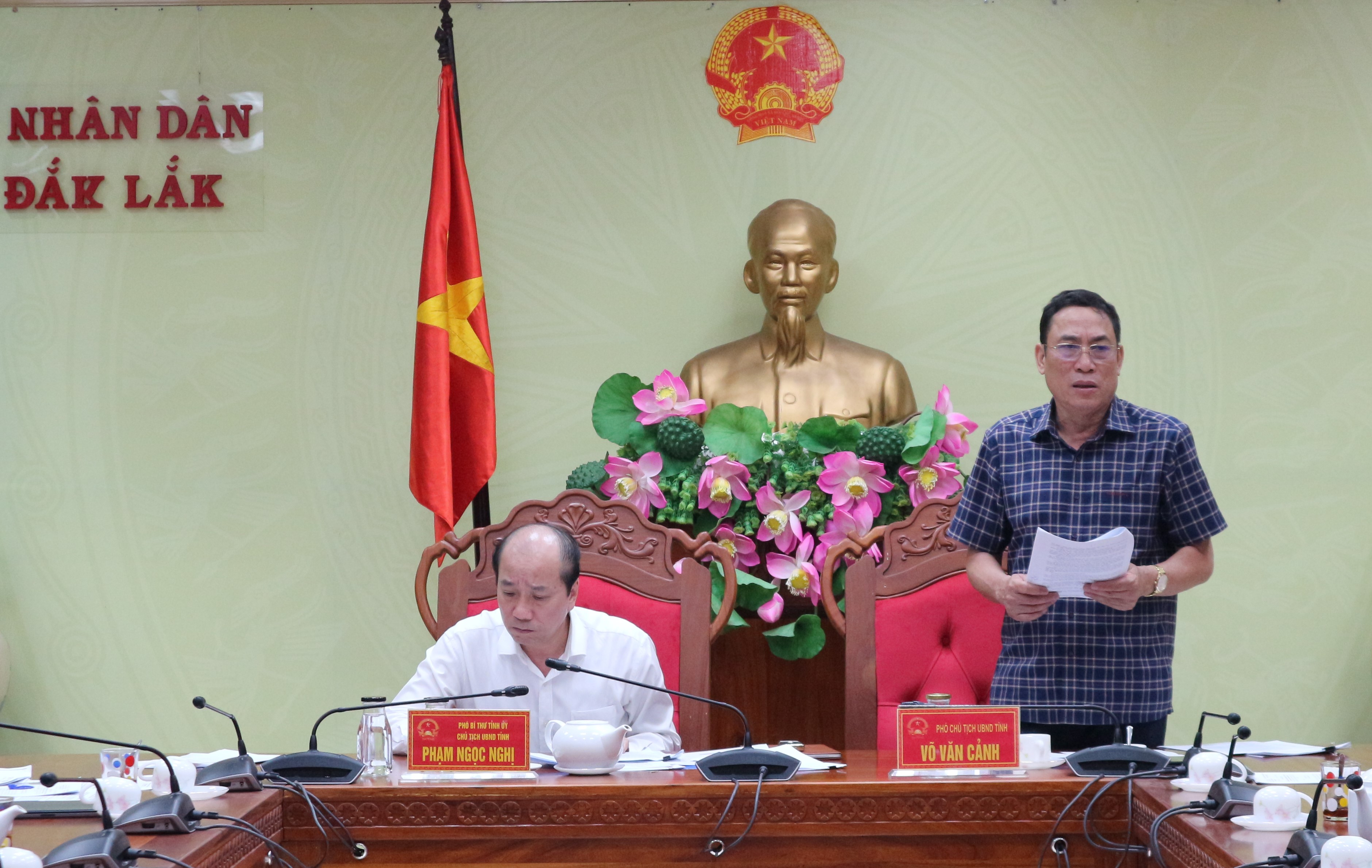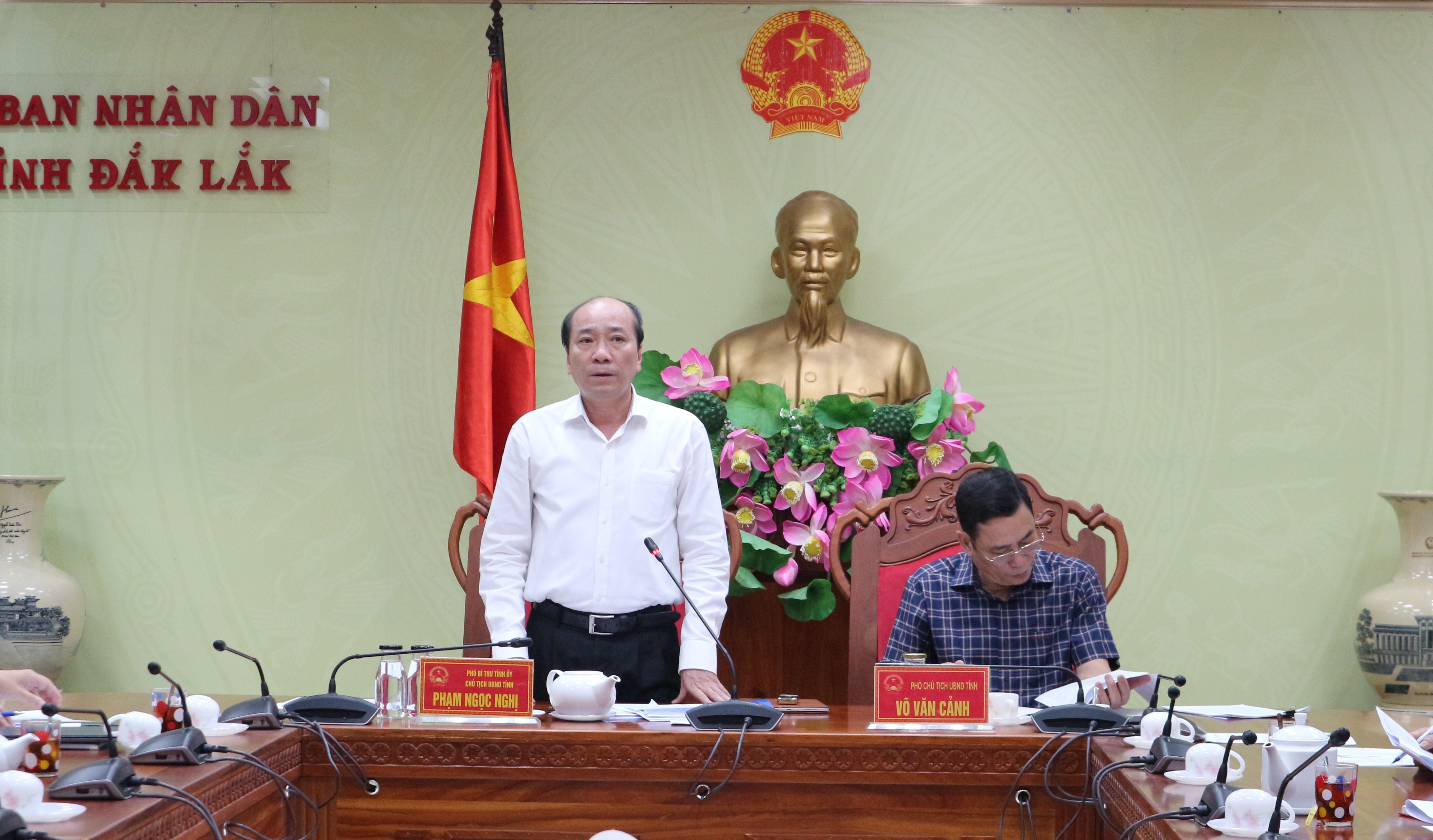 | Chủ tịch UBND tỉnh Phạm Ngọc Nghị phát biểu chỉ đạo tại cuộc họp |