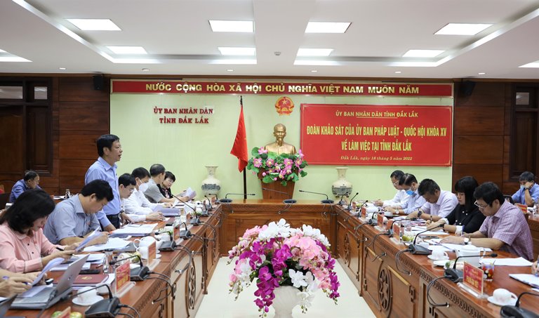 Sáng 18/5, Đoàn khảo sát của Ủy ban Pháp luật của Quốc hội do Phó Chủ nhiệm Ủy ban Pháp luật Nguyễn Trường Giang làm trưởng đoàn đã có buổi làm việc với UBND tỉnh về tình hình thực hiện pháp luật về tiêu chuẩn, điều kiện bổ nhiệm viên chức quản lý và việc quản lý viên chức theo chức danh nghề nghiệp trên địa bàn tỉnh. Tiếp và làm việc với đoàn có Phó Chủ tịch UBND tỉnh H’Yim Kđoh cùng đại diện lãnh đạo các sở, ban, ngành liên quan trong tỉnh.