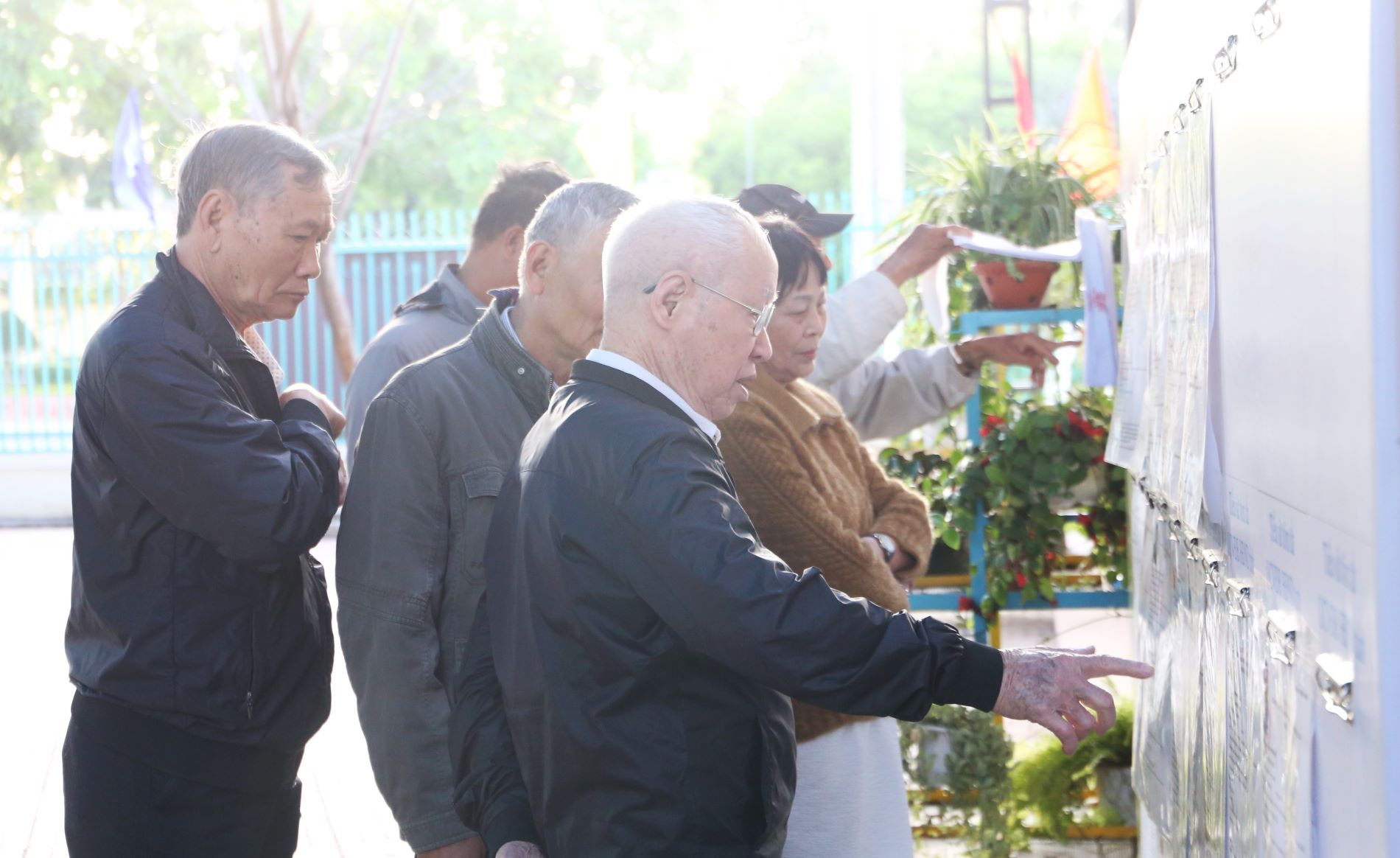 Cử tri tìm hiểu thông tin đại biểu được niêm yết.
