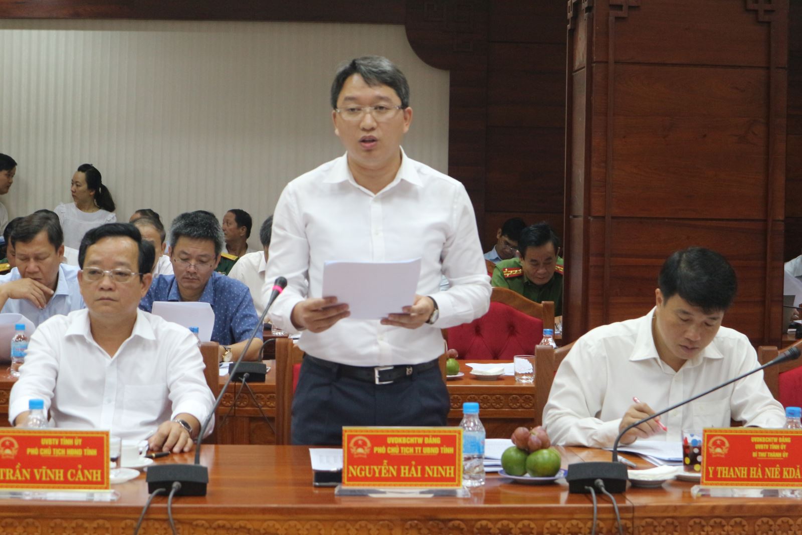 | Phó Chủ tịch Thường trực UBND tỉnh - Nguyễn Hải Ninh báo cáo tại buổi làm việc |