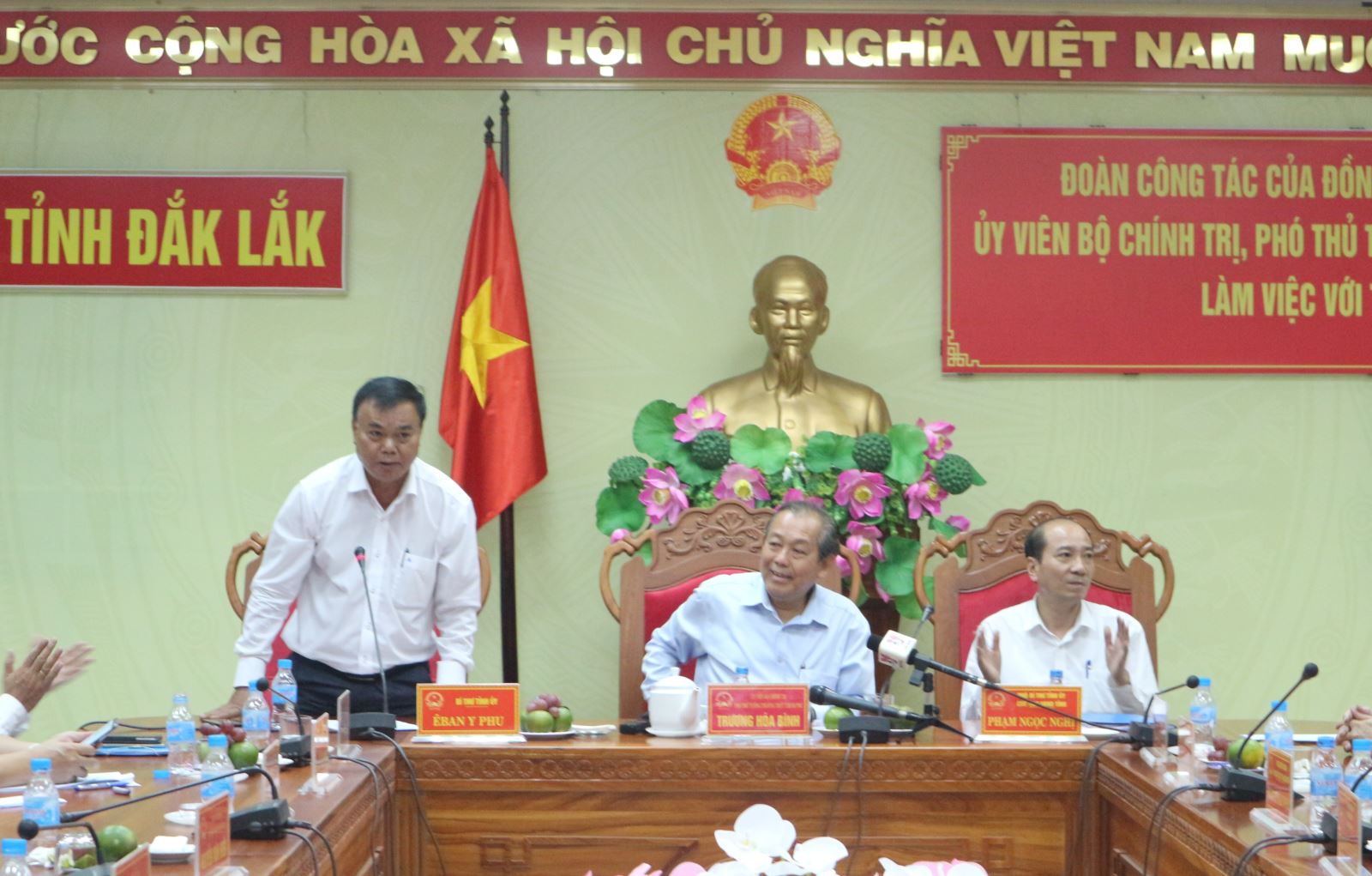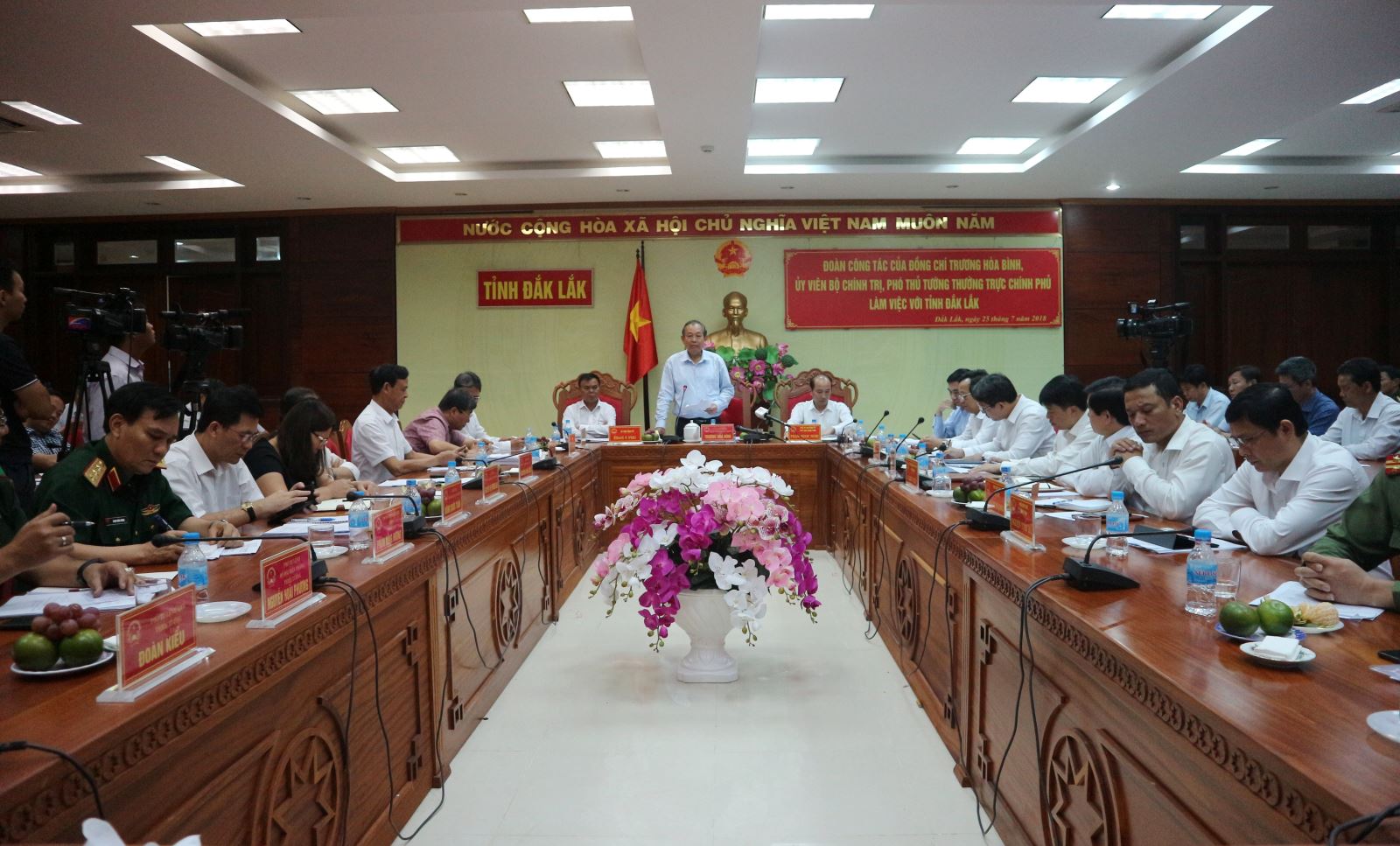 Sáng 25/7, Đoàn Công tác do Ủy viên Bộ Chính trị, Phó Thủ tướng Thường trực Chính phủ - Trương Hòa Bình làm Trưởng đoàn đã có buổi làm việc với UBND tỉnh Đắk Lăk về tình hình bố trí, sắp xếp, ổn định dân di cư tự do trên địa bàn tỉnh. Tiếp và làm việc với đoàn có Bí Thư Tỉnh ủy - Êban Y Phu; Chủ tịch UBND tỉnh - Phạm Ngọc Nghị; các Phó Chủ tịch UBND tỉnh; lãnh đạo cac sở, ngành, địa phương trên địa bàn tỉnh.