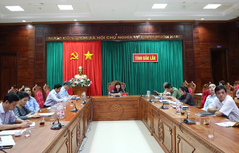 | Phó Chủ tịch UBND tỉnh H'Yim Kđoh chủ trì cùng đại diện lãnh đạo các sở, ngành tham dự tại điểm cầu Đắk Lắk |