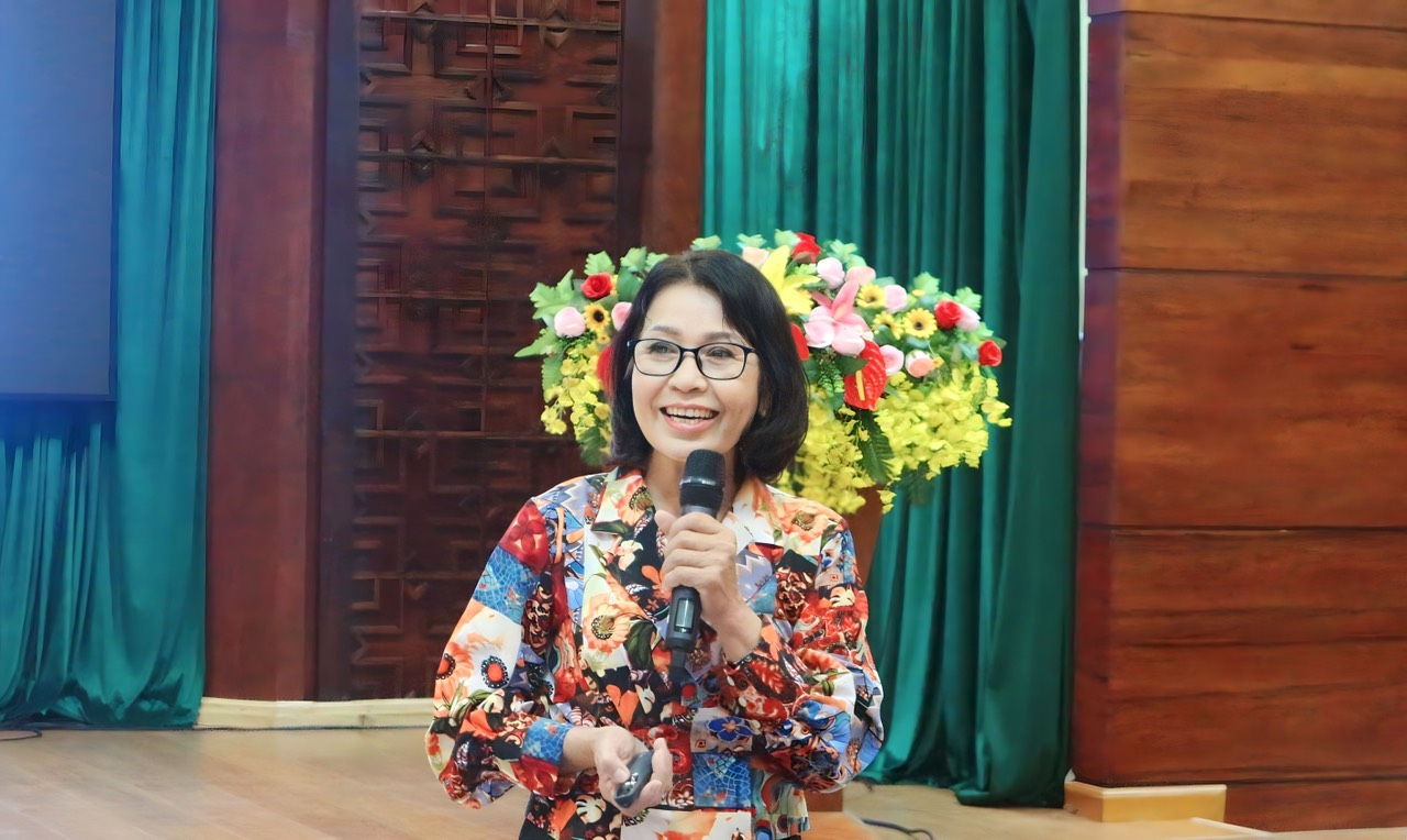| Nhà giáo ưu tú Phạm Thị Xê - Phó Giám đốc Trung tâm Đào tạo nguồn nhân lực cán bộ Đà Nẵng (nguyên Hiệu phó Trường Chính trị Nguyễn Chí Thanh, tỉnh Thừa Thiên Huế) báo cáo chuyên đề |