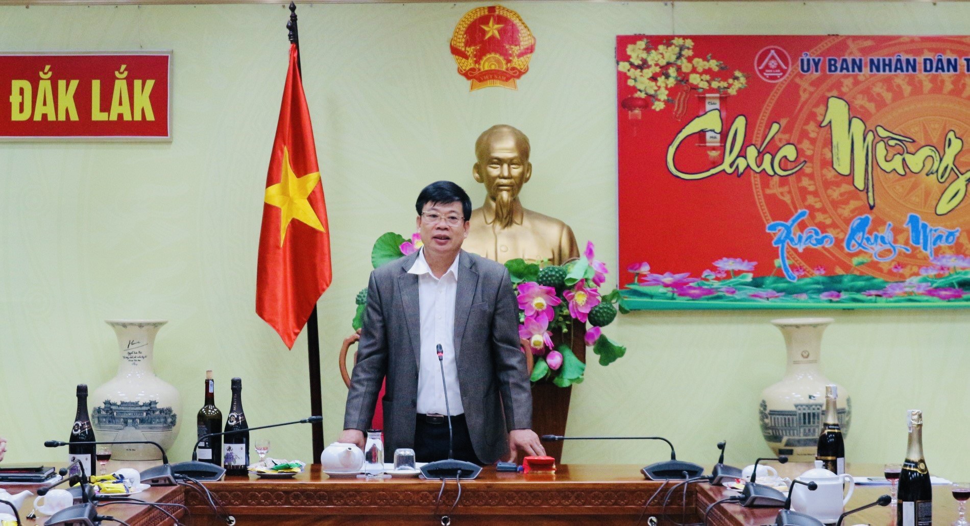 Phát biểu tại buổi gặp mặt, Chánh Văn phòng UBND tỉnh Bùi Hồng Quý đã thay mặt lãnh đạo Văn phòng UBND tỉnh gửi lời chúc mừng năm mới đến công chức, viên chức, người lao động của Văn phòng UBND tỉnh. Chánh Văn phòng đề nghị các phòng, đơn vị tập trung triển khai, thực hiện một số nhiệm vụ sau Tết nguyên đán Quý Mão 2023 gồm: triển khai Nghị quyết số 72/2022/QH15 ngày 15/11/2022 của Quốc hội khóa XV về thí điểm một số cơ chế, chính sách đặc thù phát triển thành phố Buôn Ma Thuột, tỉnh Đắk Lắk; chuẩn bị tốt cho Lễ hội Cà phê Buôn Ma Thuột lần thứ 8 năm 2023; đẩy nhanh tiến độ triển khai Dự án Cao tốc Khánh Hoà - Buôn Ma Thuột; rà soát nhu cầu hàng hóa của người dân sau Tết để điều tiết, cung cầu kịp thời.