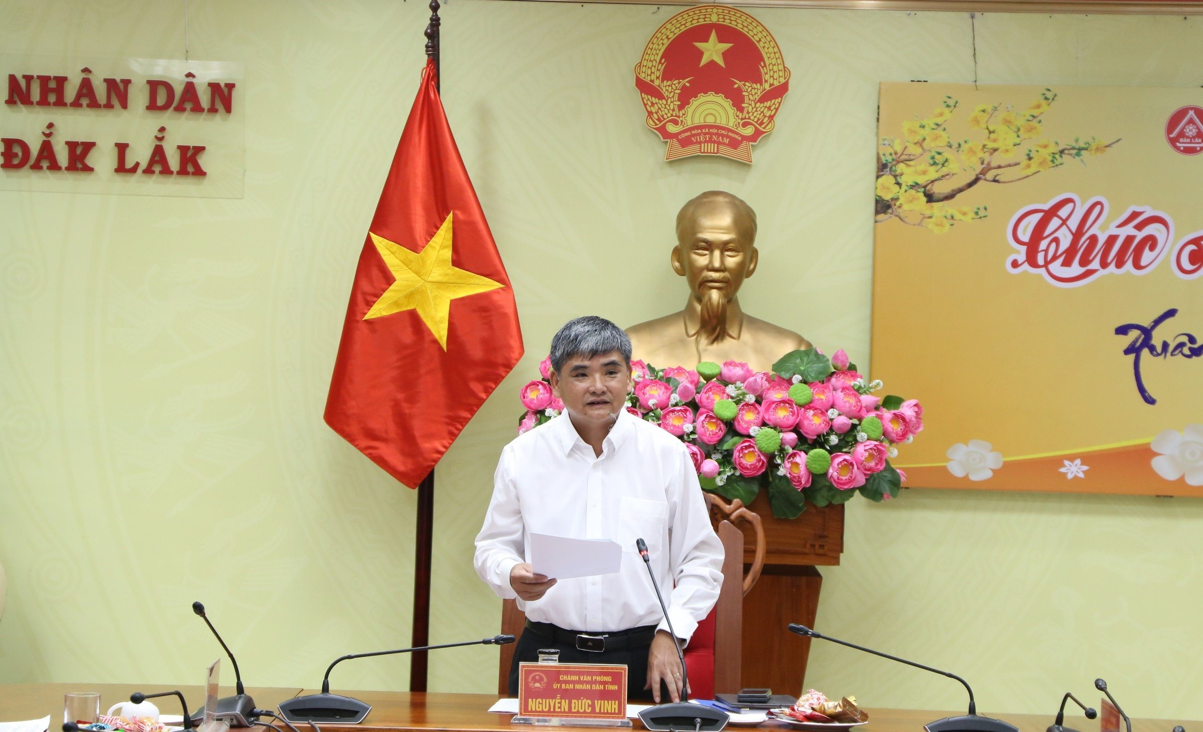 Sáng ngày 15/02 (Mùng 6 Âm lịch), Văn phòng UBND tỉnh tổ chức Gặp mặt đầu Xuân Giáp Thìn 2024. Tham dự có các đồng chí: Nguyễn Thiên Văn - Phó Chủ tịch UBND tỉnh; H’Yim Kđoh - Phó Chủ tịch UBND tỉnh; Nguyễn Đức Vinh - Chánh Văn phòng UBND tỉnh; các đồng chí Phó Chánh Văn phòng UBND tỉnh; lãnh đạo các phòng, đơn vị; cán bộ, công chức, viên chức, người lao động (CC, VC, NLĐ) của Văn phòng UBND tỉnh.