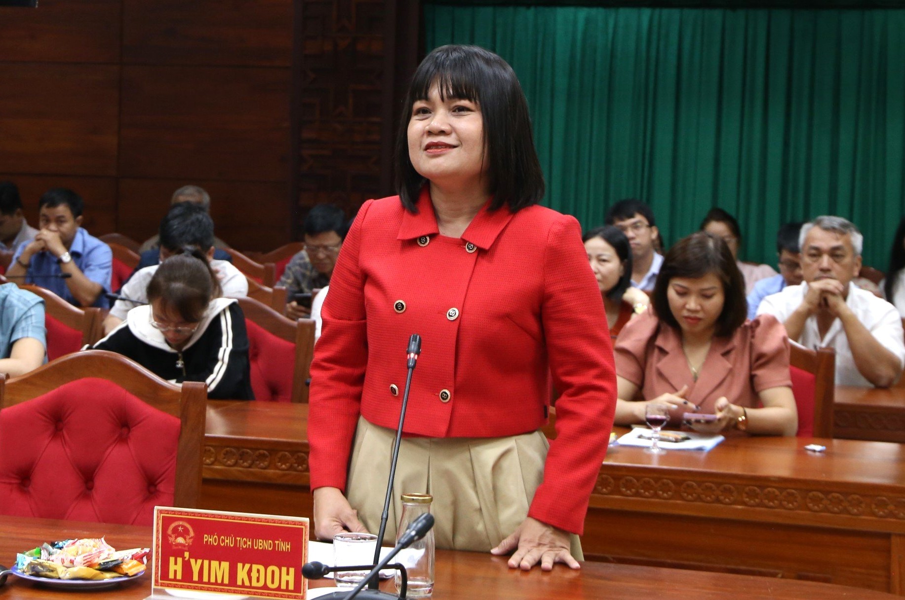 | Đồng chí H’Yim Kđoh - Phó Chủ tịch UBND tỉnh phát biểu tại buổi gặp mặt |