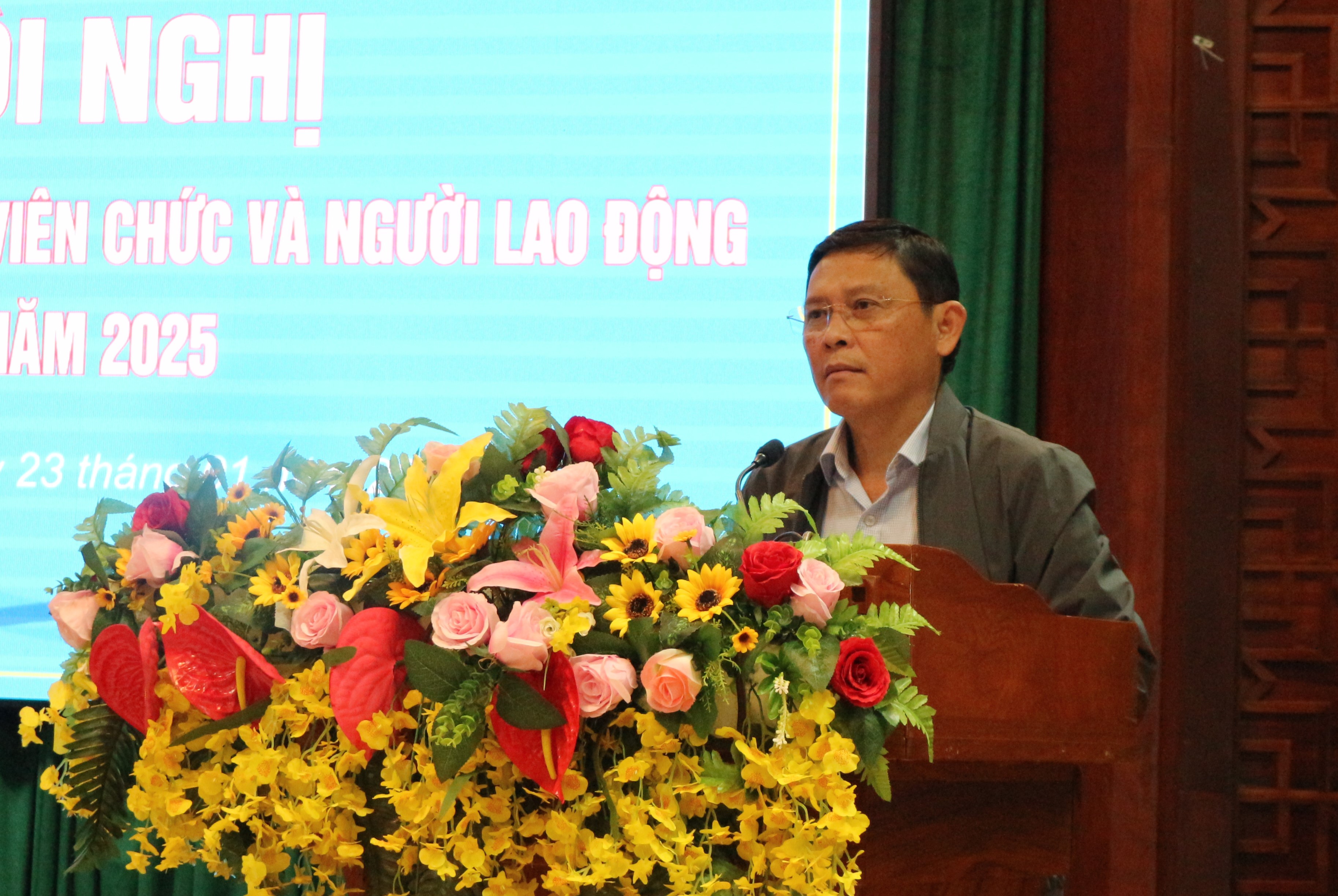 Phát biểu chỉ đạo hội nghị, đồng chí Nguyễn Tuấn Hà - Phó Chủ tịch Thường trực UBND tỉnh ghi nhận những nỗ lực, kết quả đã đạt được của tập thể CBCCVC, NLĐ Văn phòng UBND tỉnh trong năm vừa qua. Năm 2025, dự báo tình hình thế giới, trong nước có nhiều thay đổi lớn ảnh hưởng mạnh mẽ đến mọi mặt của tỉnh. Do đó, đồng chí đề nghị tập thể CBCCVC, NLĐ Văn phòng UBND tỉnh phát huy những kết quả đã đạt được, khắc phục khó khăn, hạn chế để hoàn thành nhiệm vụ được giao, trong đó trọng tâm là: tiếp tục giữ vững sự đoàn kết, thống nhất, phát huy sức mạnh tập thể, nâng cao vai trò, trách nhiệm của từng CBCCVC, NLĐ trong quá trình thực hiện nhiệm vụ; tập trung thực hiện kế hoạch tinh gọn hiệu quả bộ máy cơ quan; tập trung cho các sự kiện lớn sắp diễn ra (như: Lễ hội Cà phê Buôn Ma Thuột; Đại hội Đảng các cấp, các công trình trọng điểm của tỉnh)…